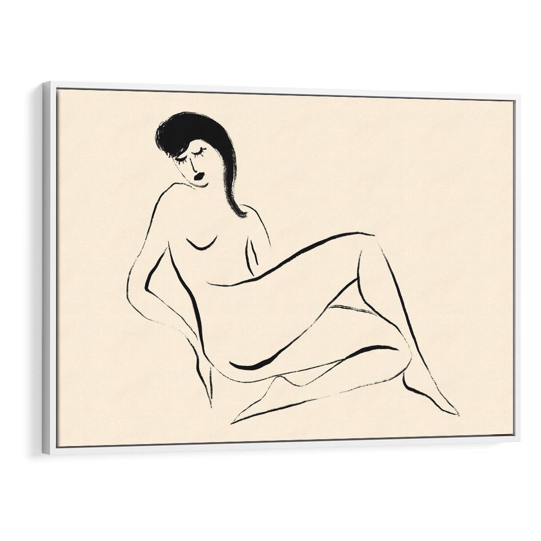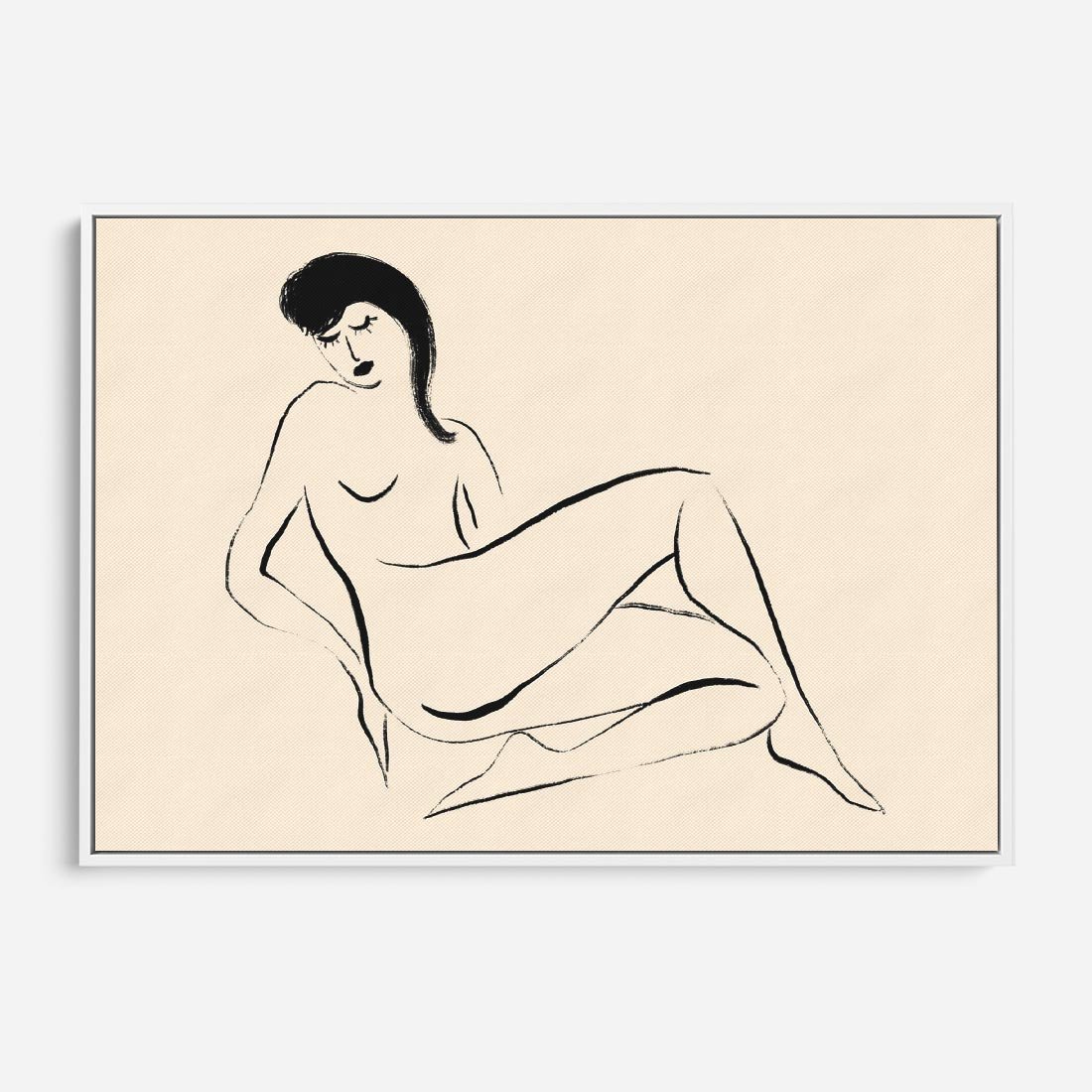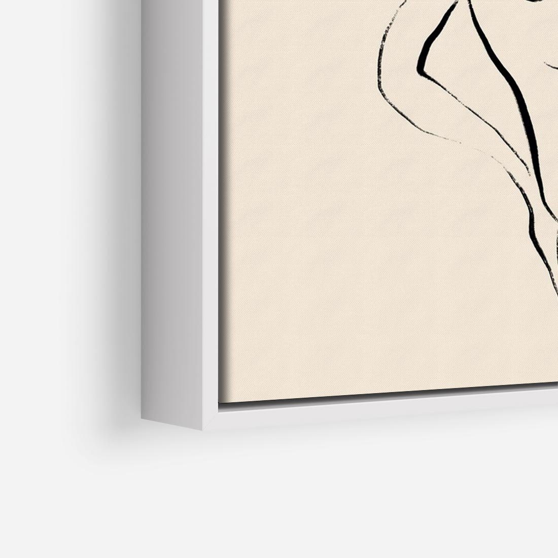 Ten abstrakcyjny rysunek w czarno-białym stylu namalowany minimalistyczną kreską przedstawia nagą kobietę. Delikatne linie podkreślają jej piękno i subtelność, jednocześnie pozostawiając miejsce na wyobraźnię i interpretację. To dzieło sztuki emanuje prostotą, jednocześnie ukazując głębię i wyrazistość ludzkiej formy.