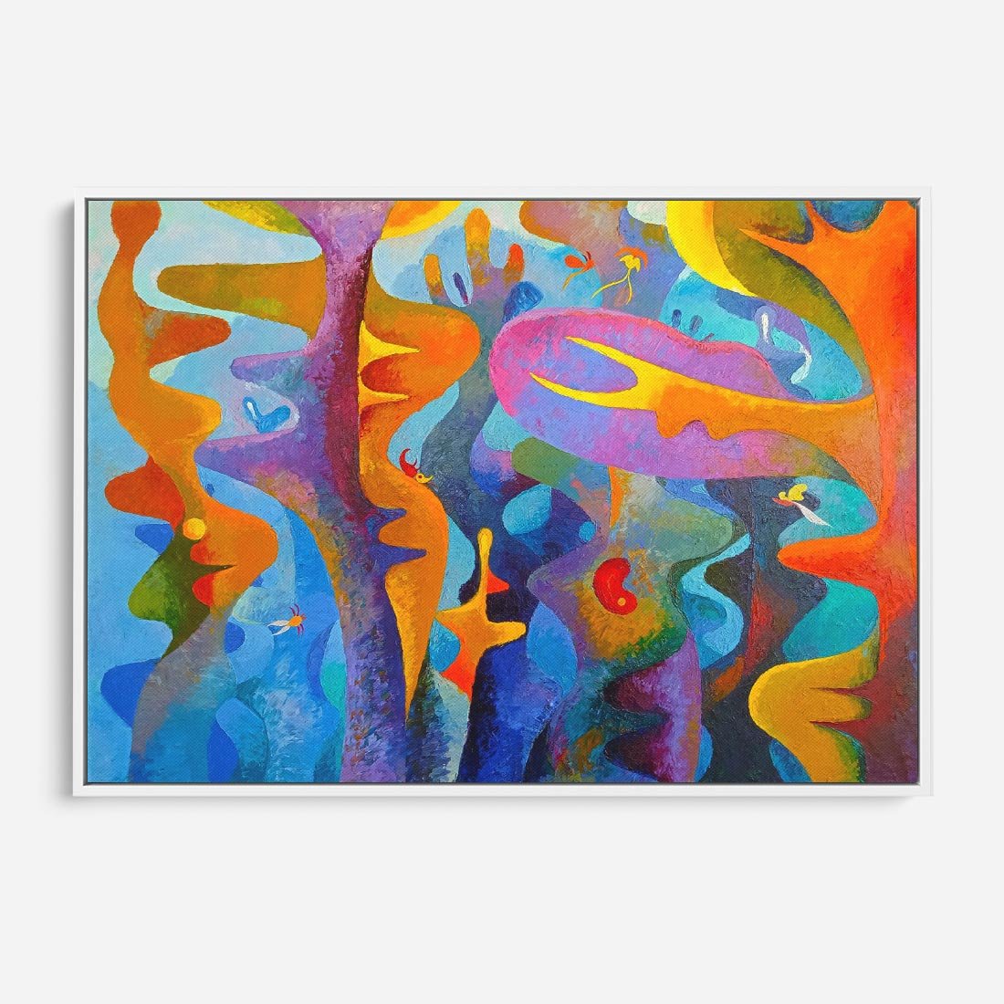 Ta energetyczna abstrakcja ukazuje dziwne formy, które tańczą wśród intensywnych ognistych kolorów. Płomienne Tańce Abstrakcji to eksplozja energii i wyobraźni, gdzie formy i kolory łączą się w dynamiczną harmonię, tworząc abstrakcyjną opowieść o ruchu, pasji i niezwykłości.