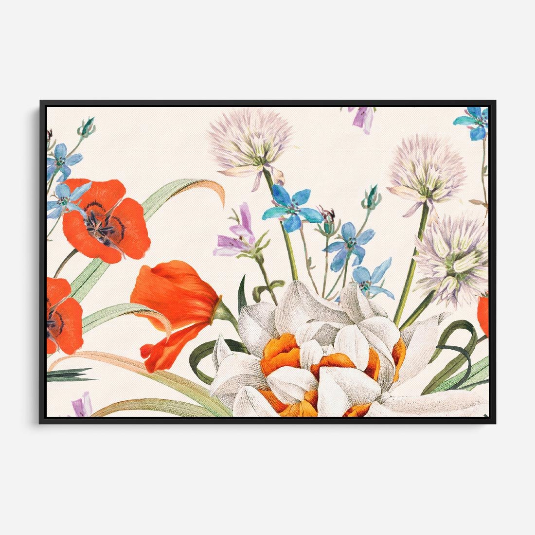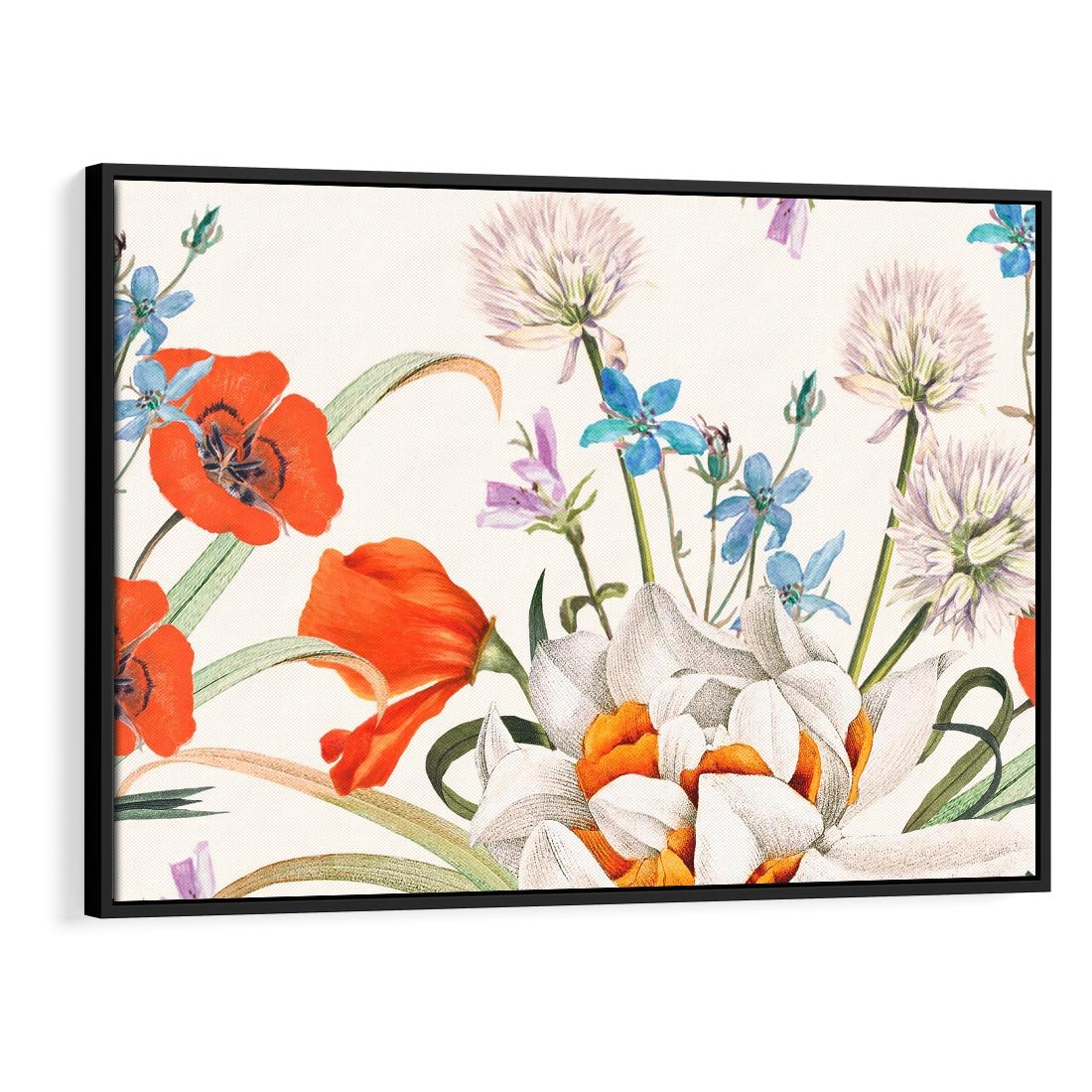 Obraz w ramie 100x70 - Polne Kwiaty - polne kwiaty, na białym tle - rama czarna