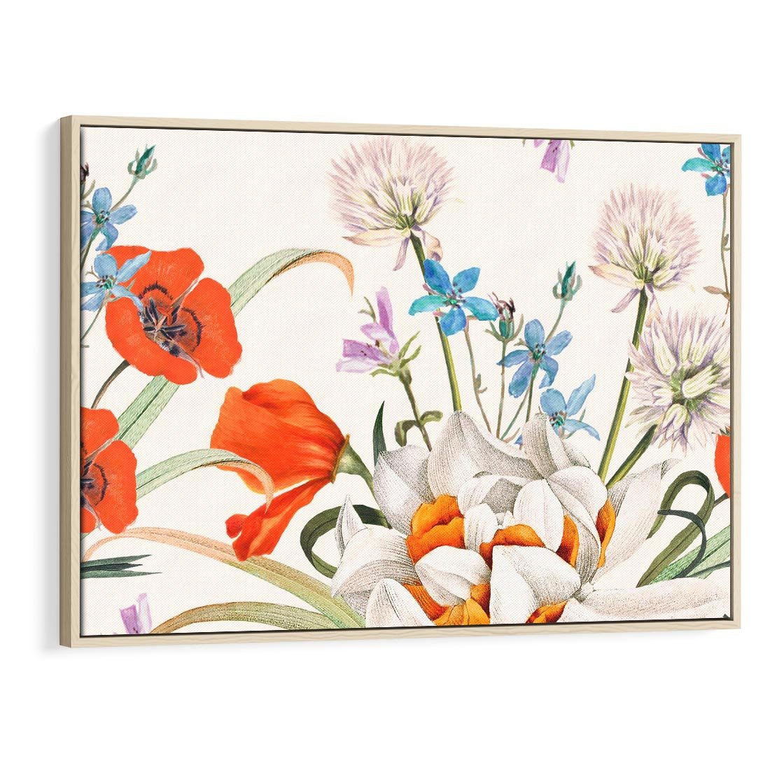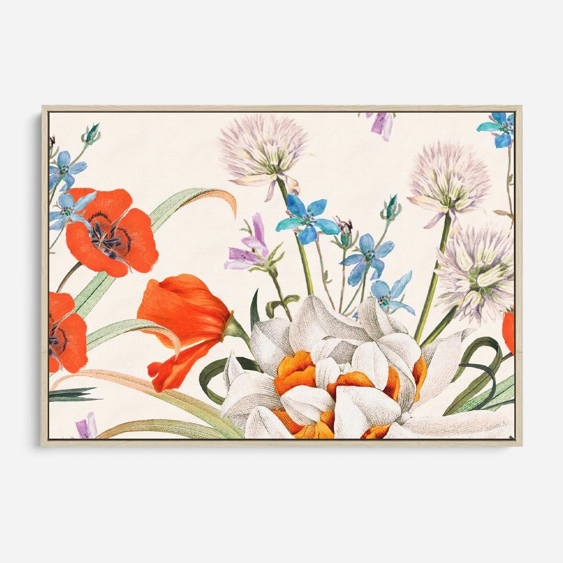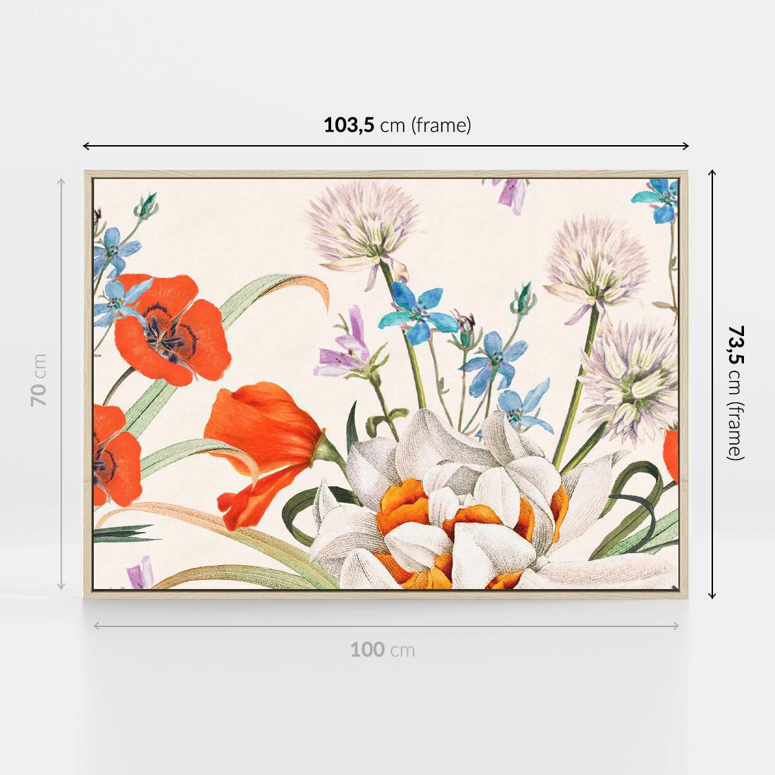 Obraz w ramie 100x70 - Polne Kwiaty - polne kwiaty, na białym tle - rama drewno