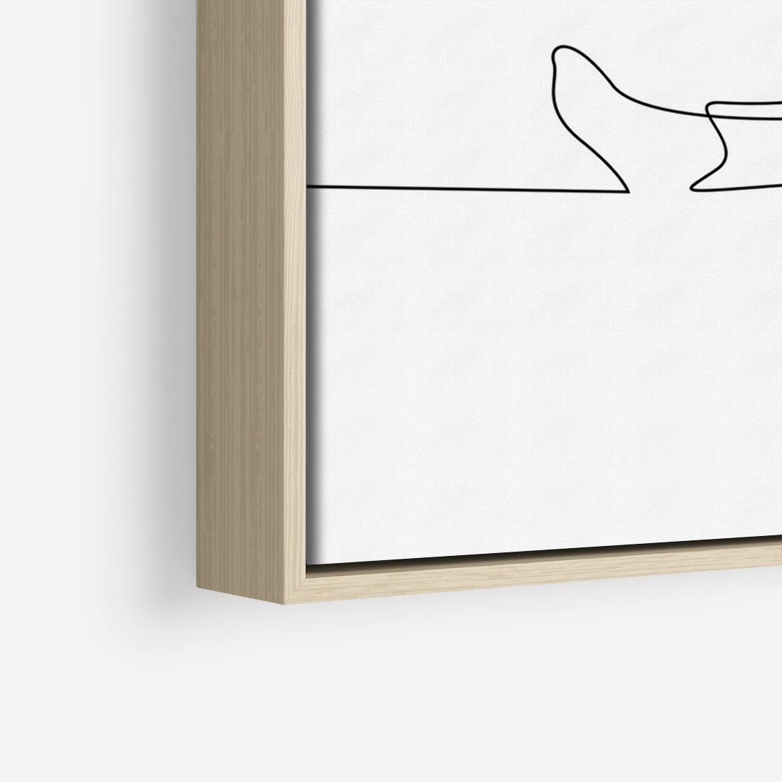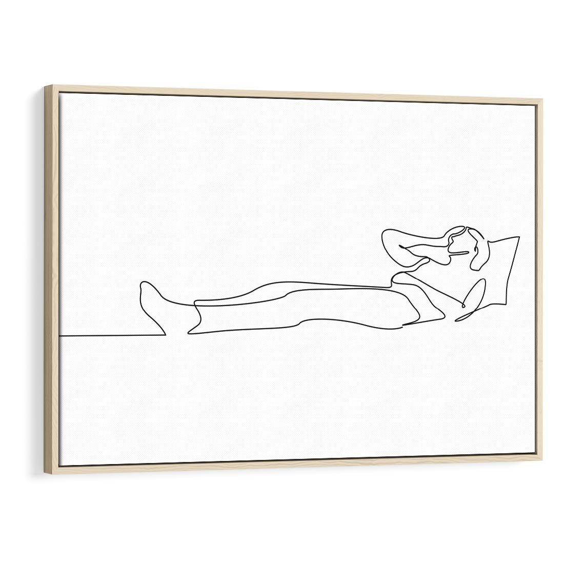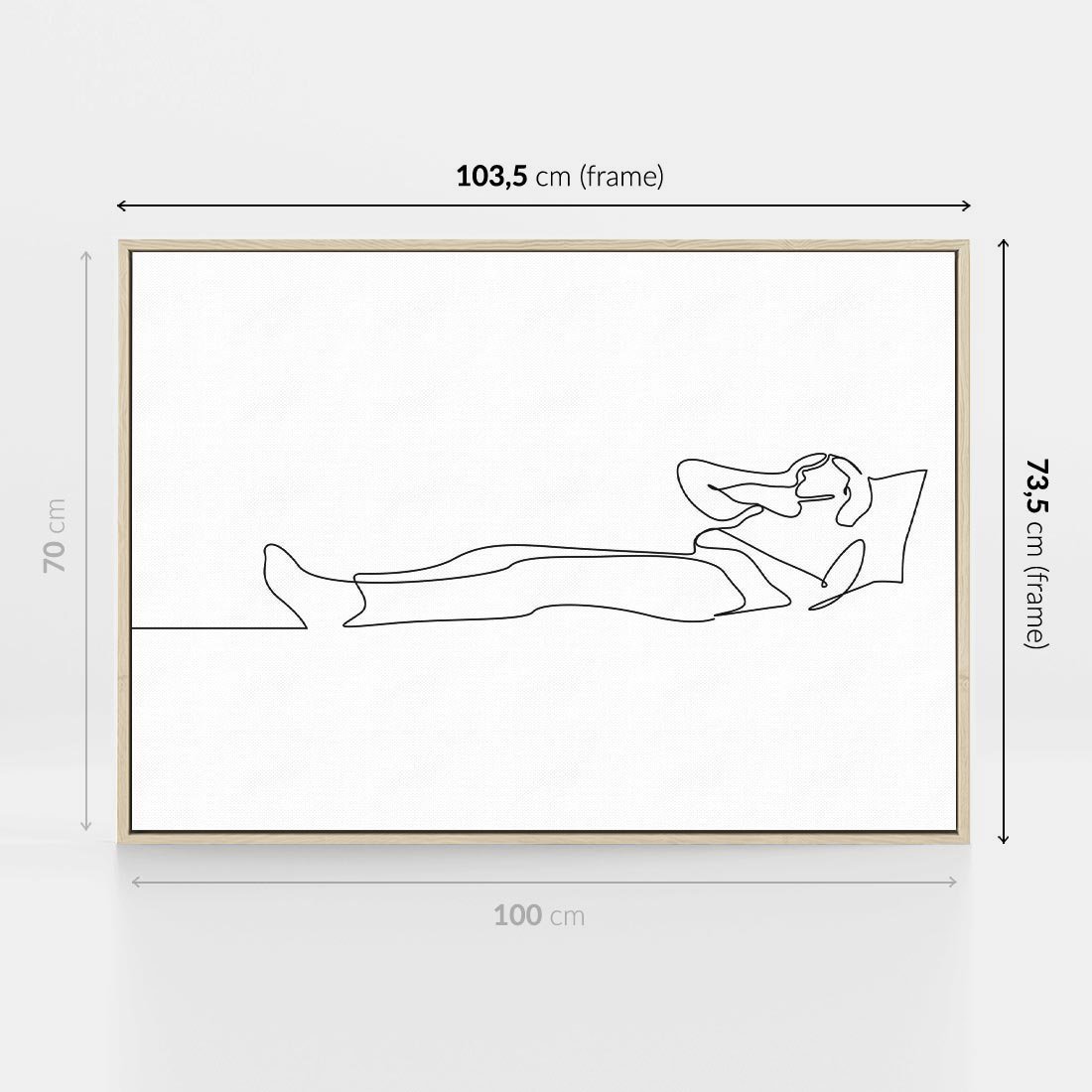 Obraz w ramie 100x70 - Postać na Łóżku - one line art, szkic - rama drewno