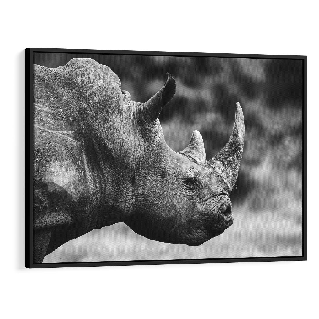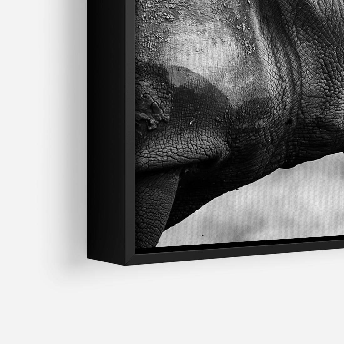 Obraz w ramie 100x70 - Potęga Afryki - czarno biała fotografia, zbliżenie na postać nosorożca - rama czarna