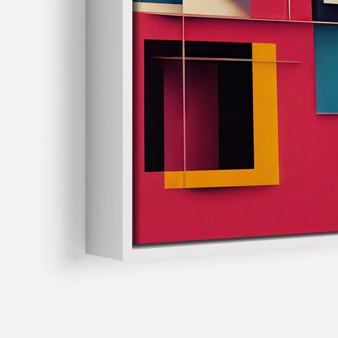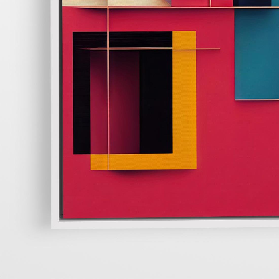 Obraz w ramie 100x70 - Przejście przez labirynt myśli - kolorowa abstrakcja, instalacja z prostokątów i lini - rama biała