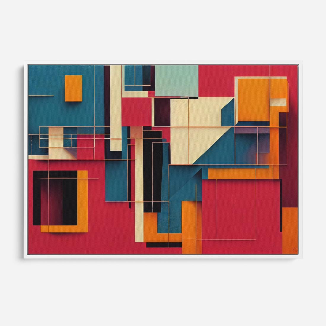 Ta ekscytująca kolorowa abstrakcja zaprasza widza do fascynującej podróży w świat form i linii. Przy użyciu mocnych barw, takich jak czerwień, pomarańcz i błękit, artysta stworzył dynamiczną instalację, składającą się z prostokątnych kształtów i linii. Obraz emanuje energią i radością, pobudzając zmysły i wyobraźnię. To wyjątkowe dzieło sztuki z pewnością przyciągnie uwagę każdego, kto ceni odważne i nowatorskie eksploracje w sztuce abstrakcyjnej.