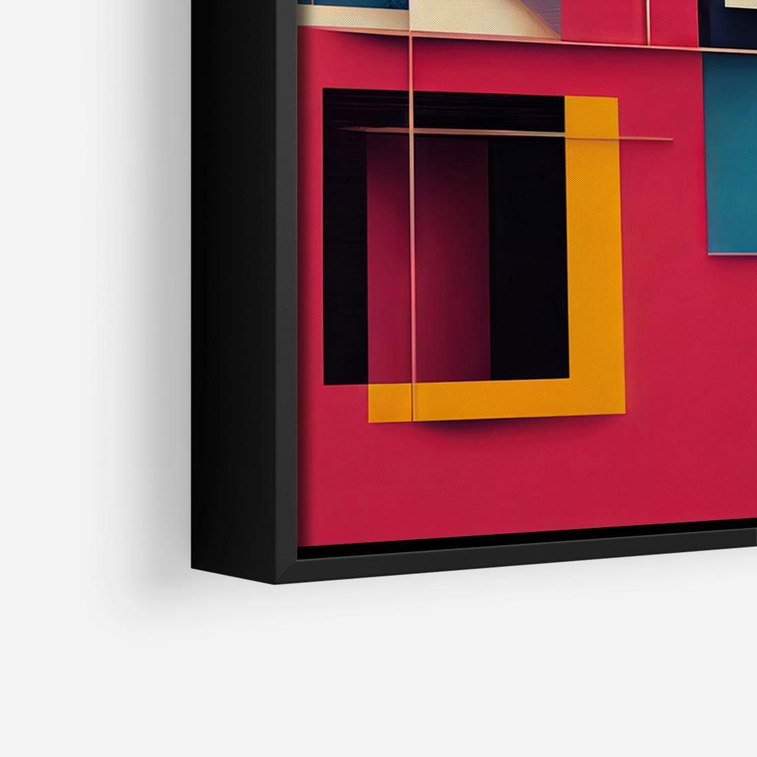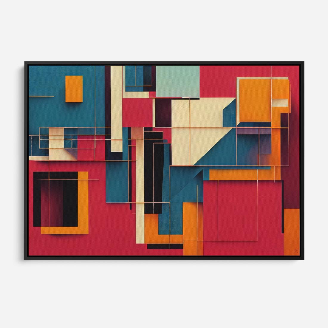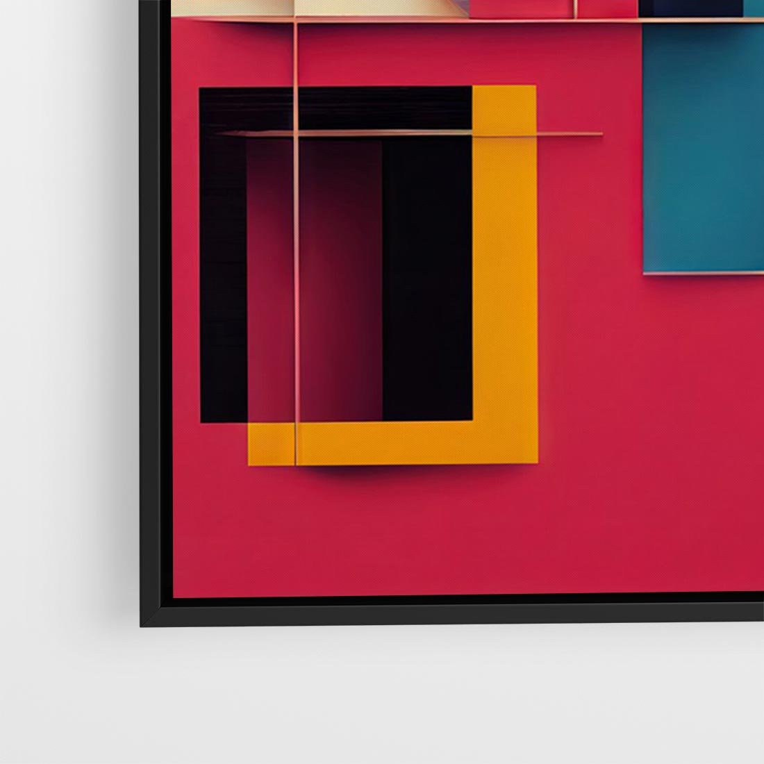 Obraz w ramie 100x70 - Przejście przez labirynt myśli - kolorowa abstrakcja, instalacja z prostokątów i lini - rama czarna
