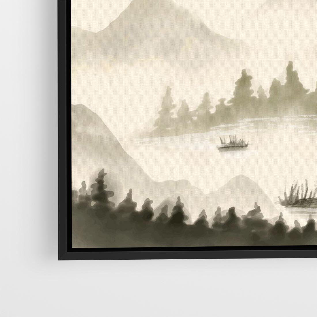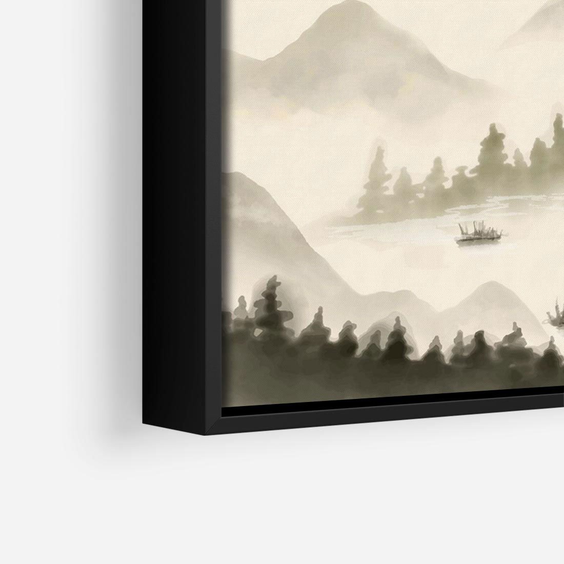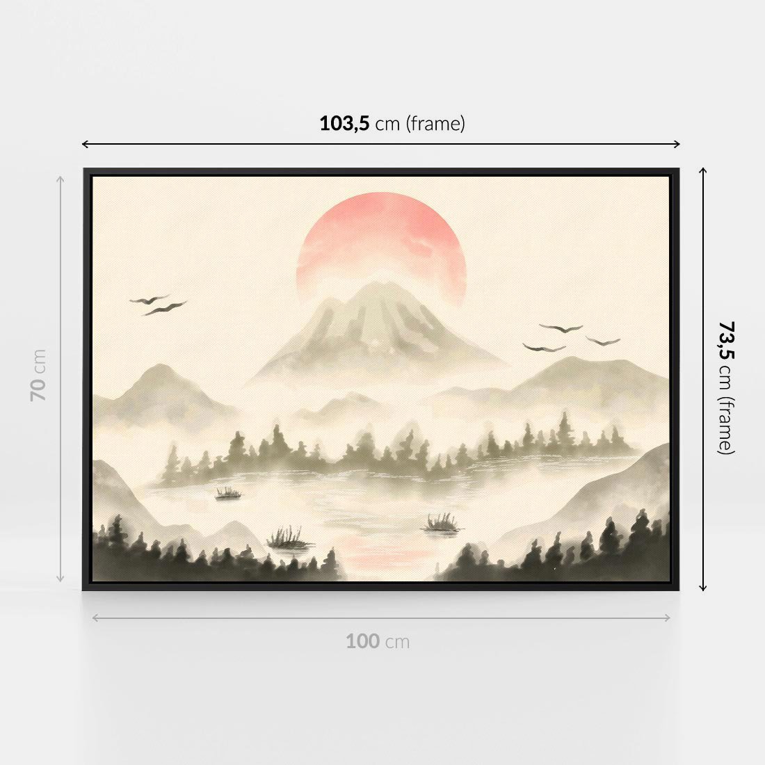Obraz w ramie 100x70 - Przyroda Japonii - japońska akwarela, góry - rama czarna