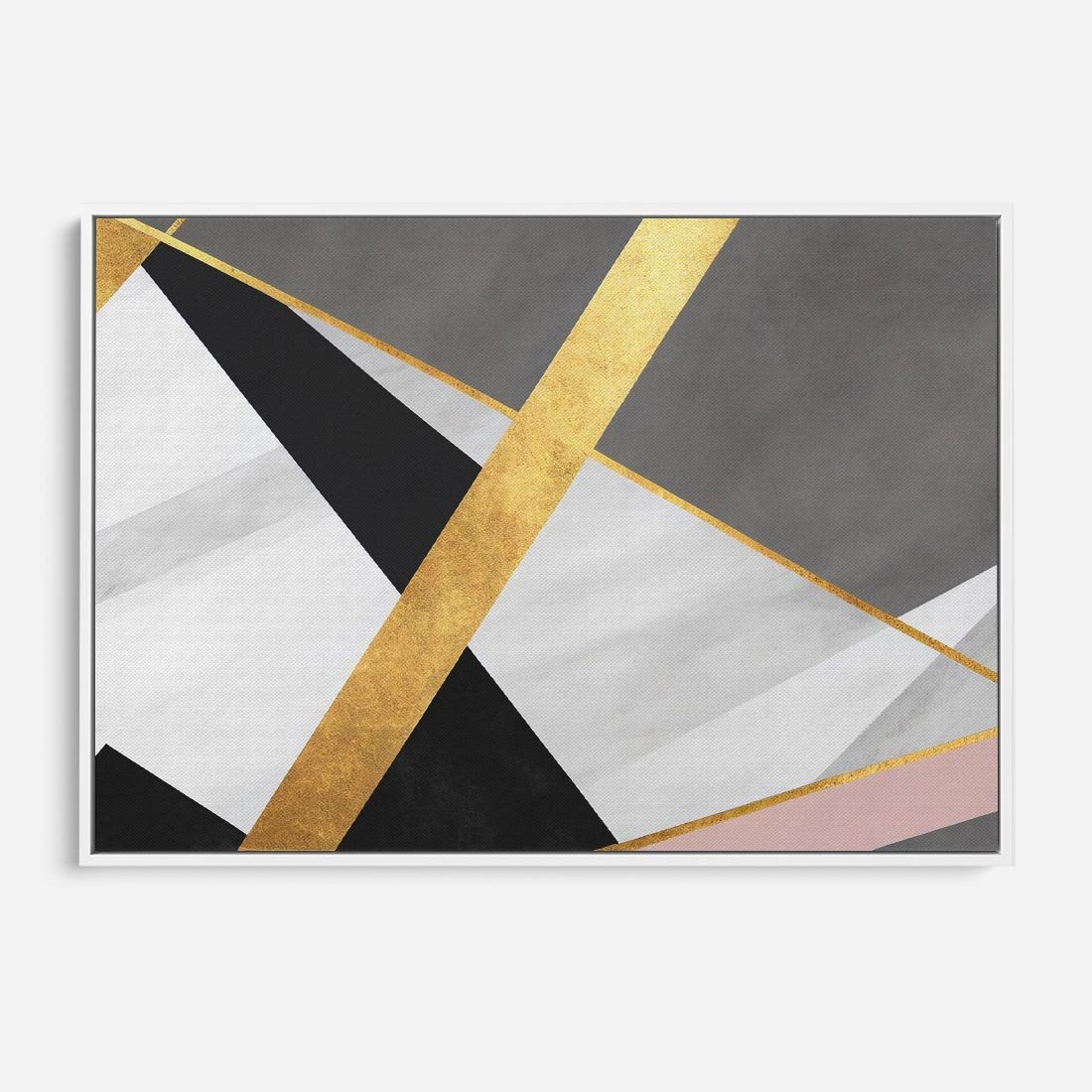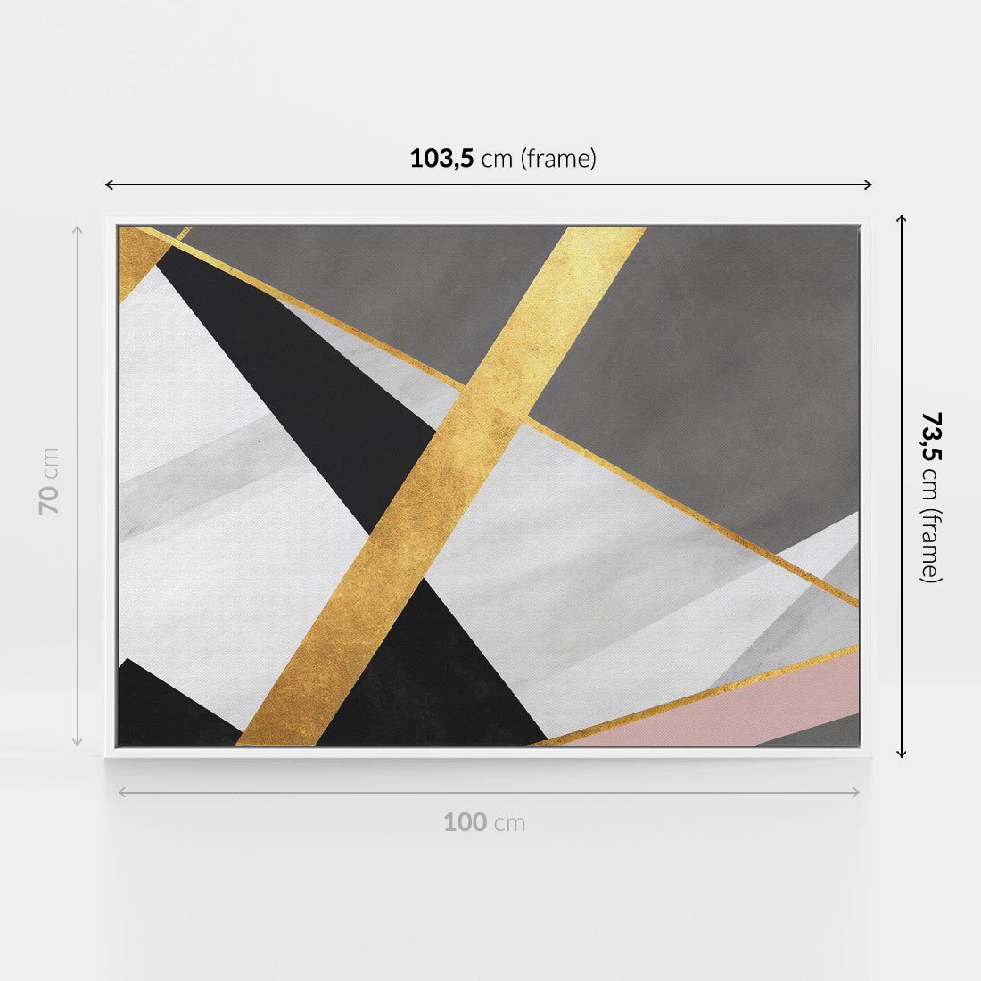 Obraz prezentuje złote abstrakcyjne linie w delikatnych odcieniach szarości i pudrowego różu. Nowoczesny styl podkreśla wyrafinowany charakter kompozycji, emanującej duchem glamour. Doskonały wybór dla wnętrz, które pragną zachować artystyczny i luksusowy wystrój.