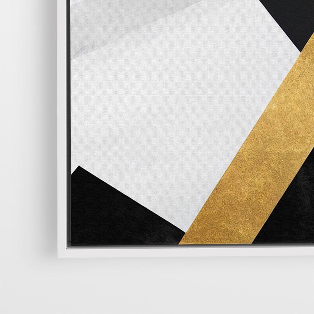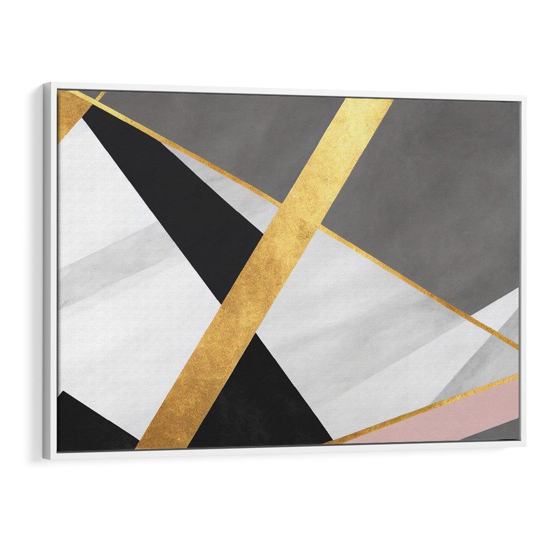 Obraz w ramie 100x70 - Pudrowe Abstrakcyjne Lustra - złote abstrakcyjne linie, szarość - rama biała