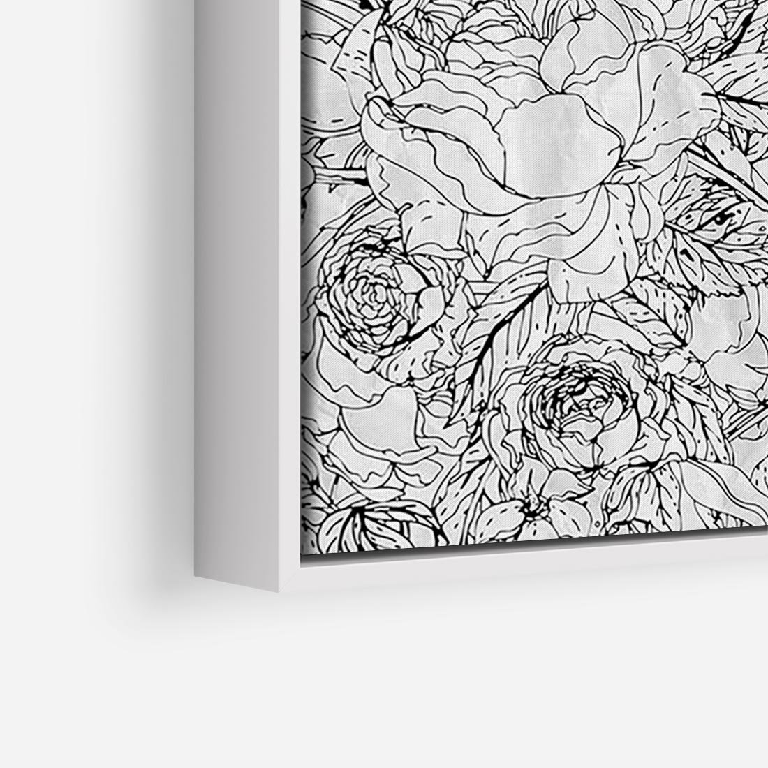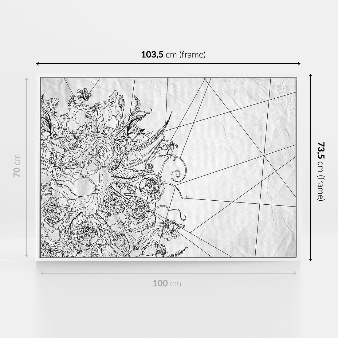 Obraz w ramie 100x70 - Refleksje w martwym punkcie - graficzny szkic, kompozycja kwiatów - rama biała