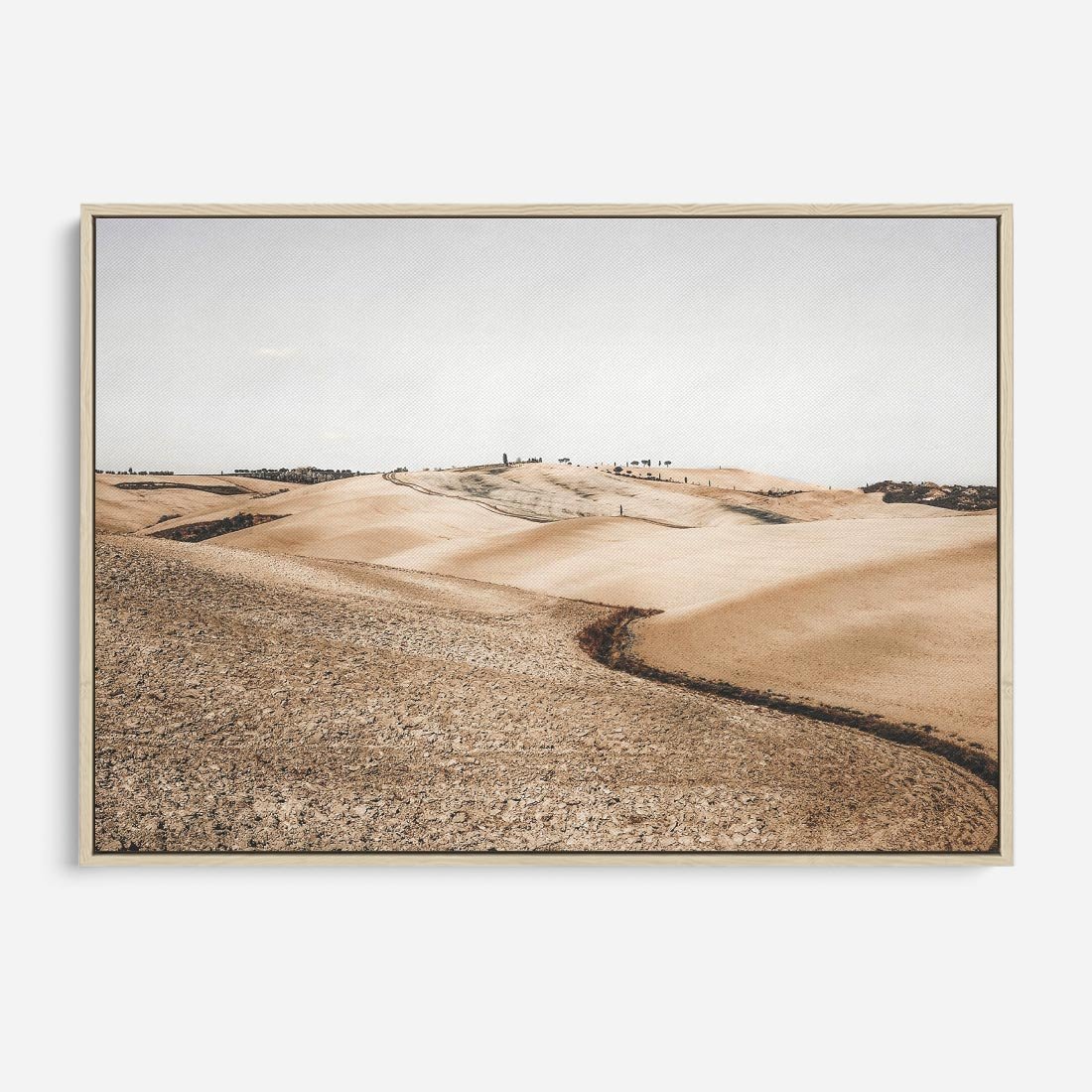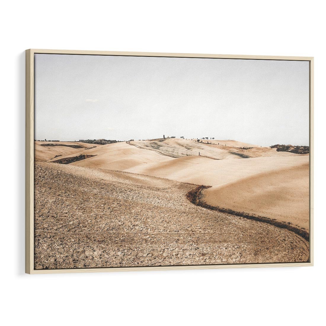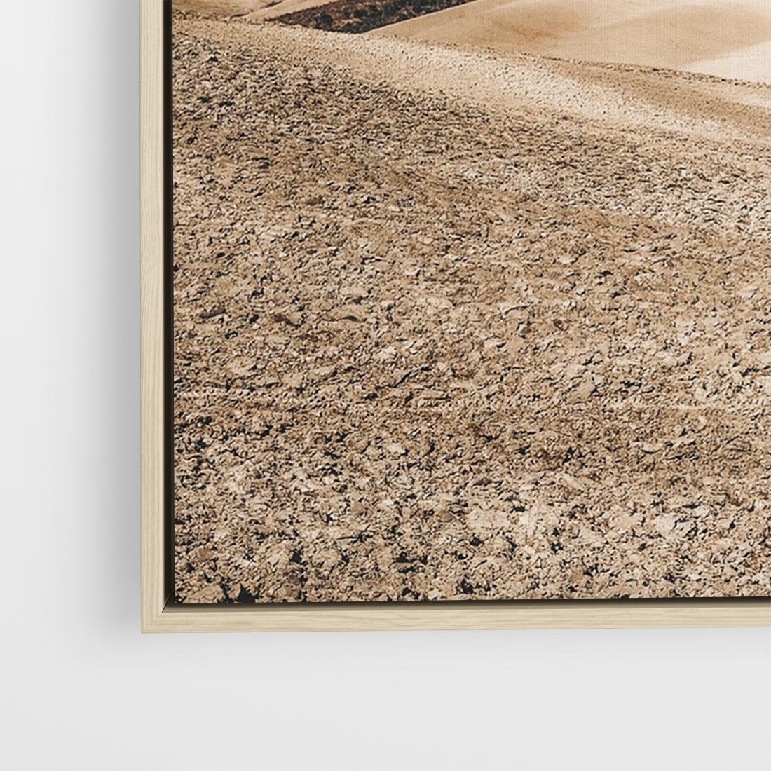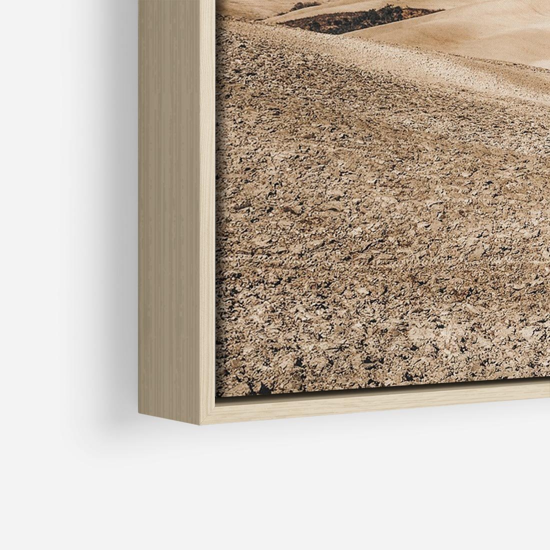 Obraz w ramie 100x70 - Refleksyjny taniec myśli - pustynny krajobraz, odcienie sepii - rama drewno