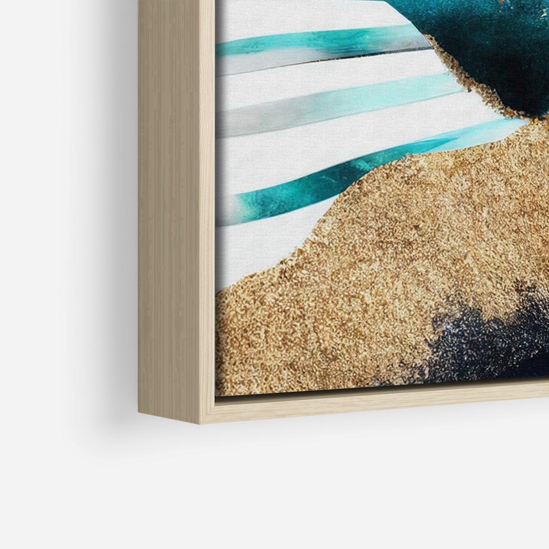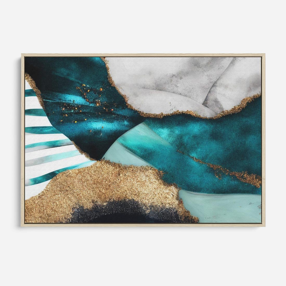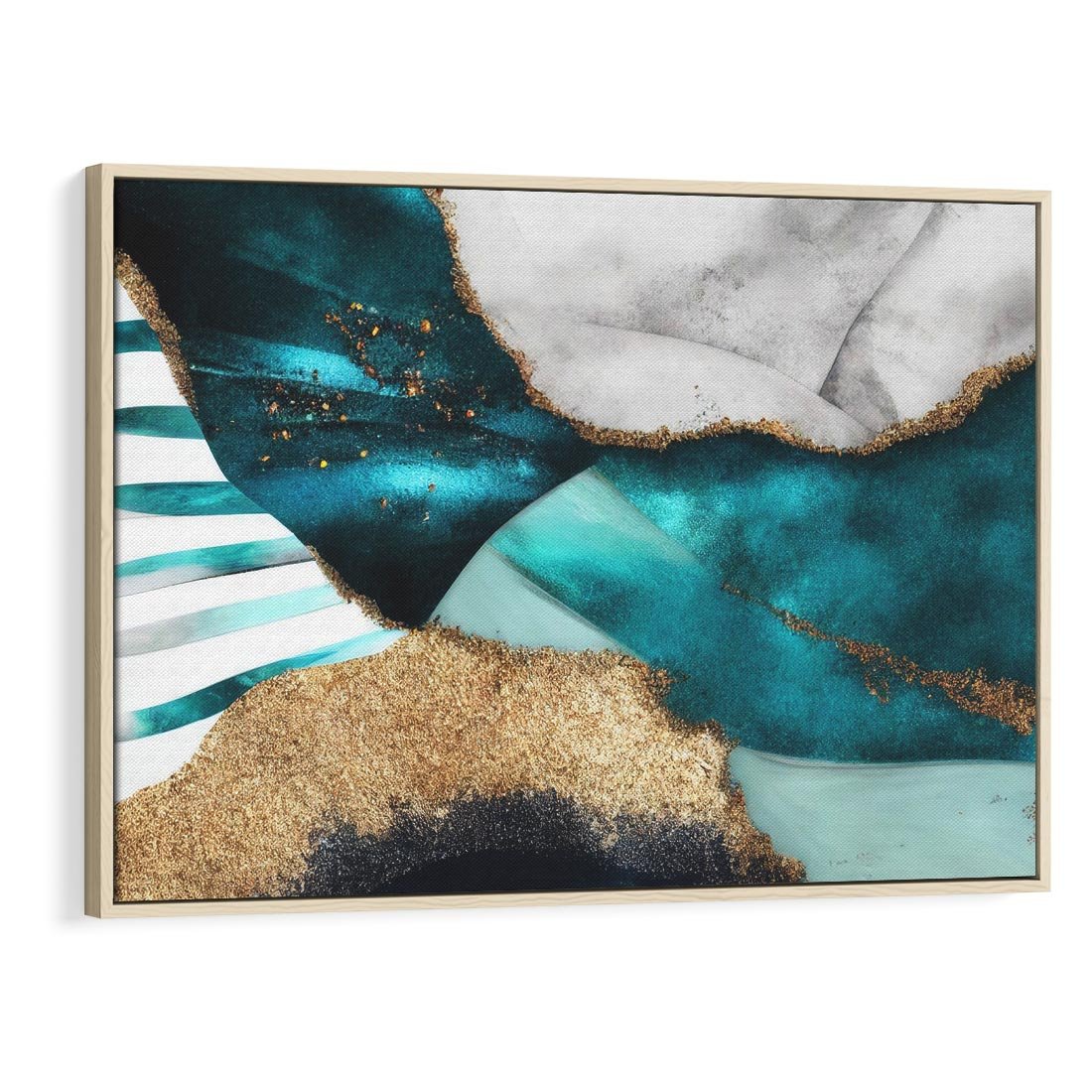 Obraz w ramie 100x70 - Rozlane Turkusy - Turkusowe plamy, złote elementy - rama drewno