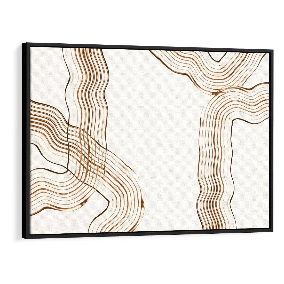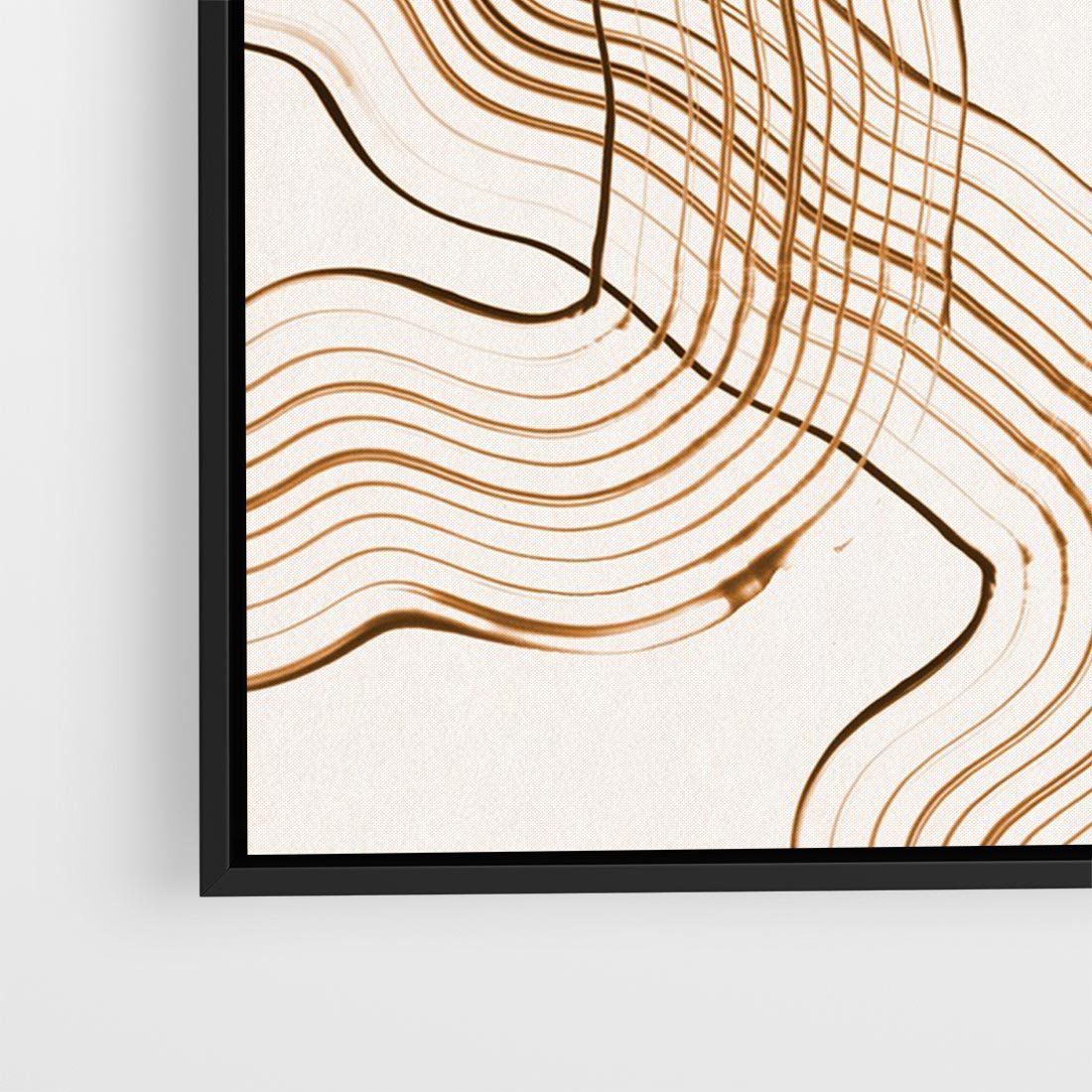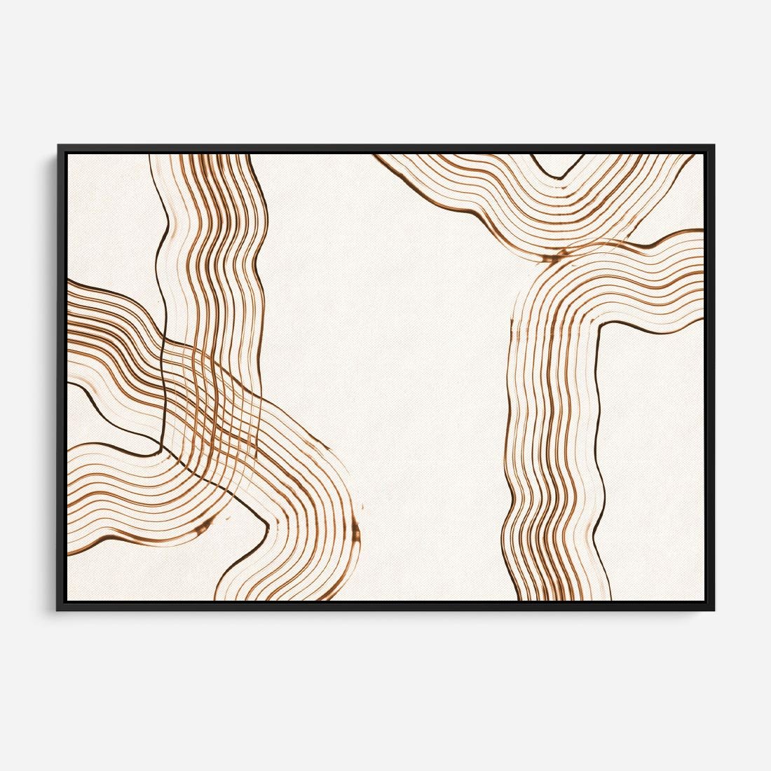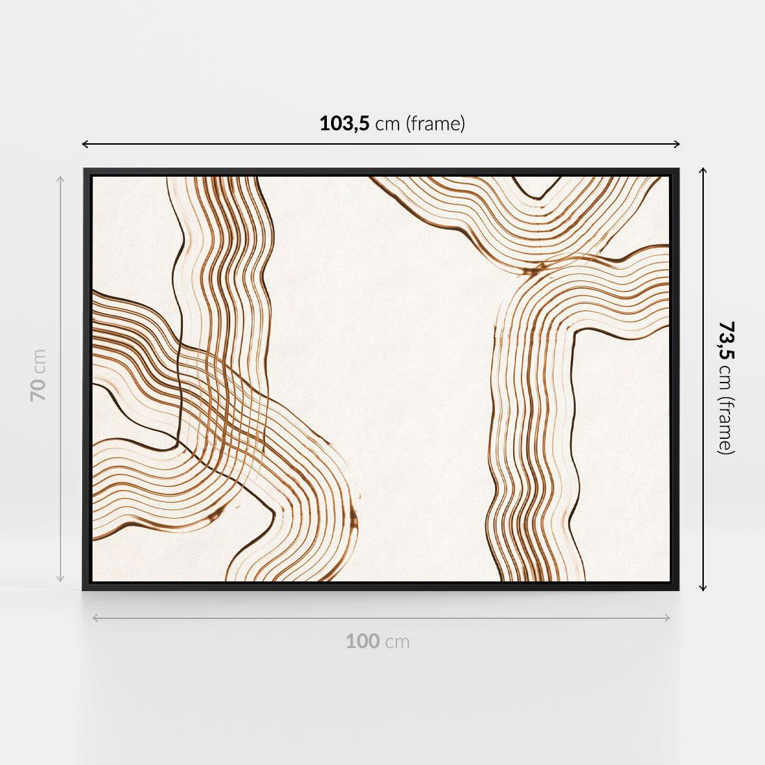 To minimalistyczne dzieło sztuki prezentuje abstrakcyjne brązowe linie kontrastujące na czystym białym tle. Kompozycja skupia się na prostocie formy i ekspresji, co nadaje obrazowi elegancji i nowoczesności. Kontrast pomiędzy brązowymi liniami a jasnym tłem tworzy harmonijny efekt, przyciągając wzrok i zapraszając do refleksji nad znaczeniem formy i kształtu.