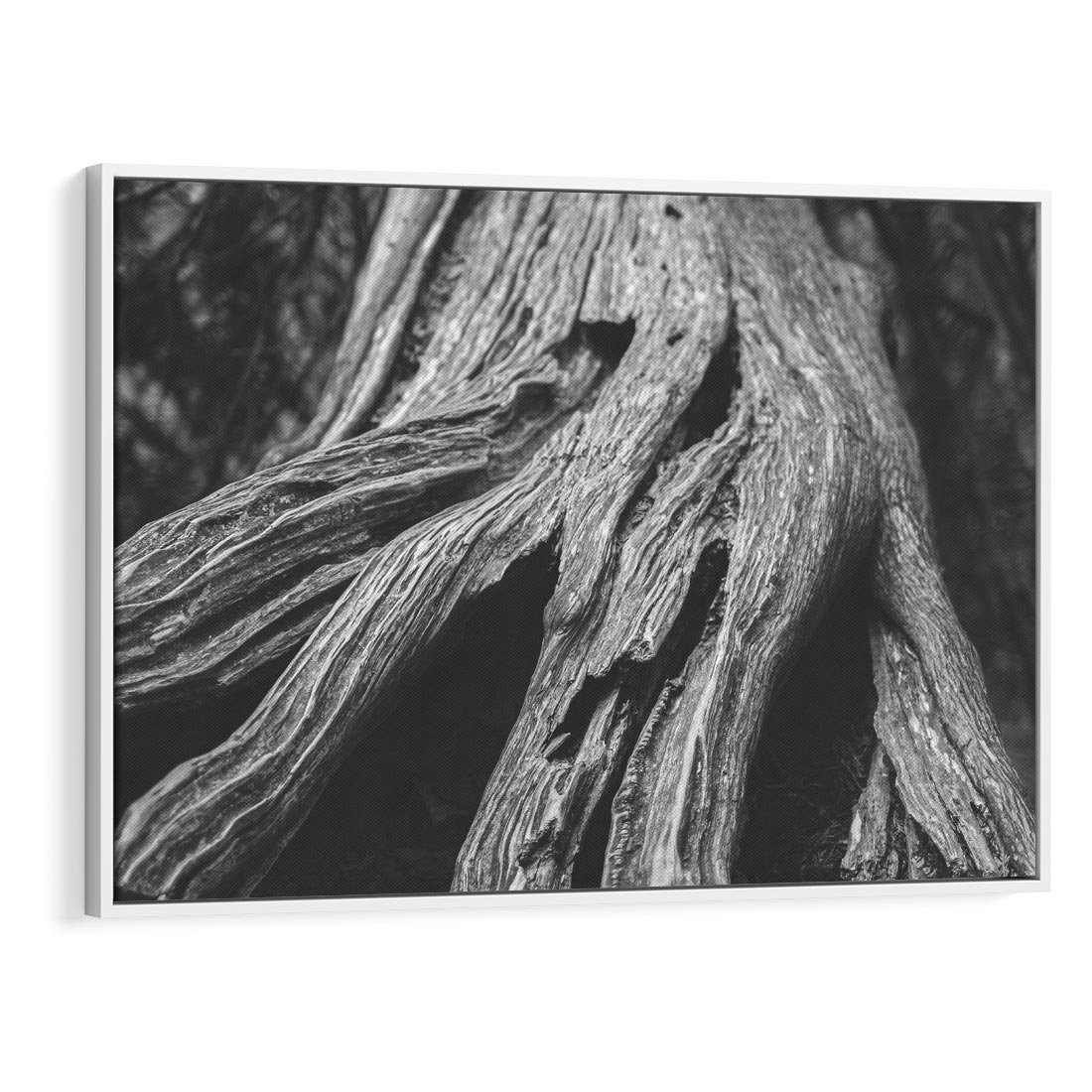 Obraz w ramie 100x70 - Siła Natury - czarno biała fotografia, korzenie wielkiego drzewa - rama biała