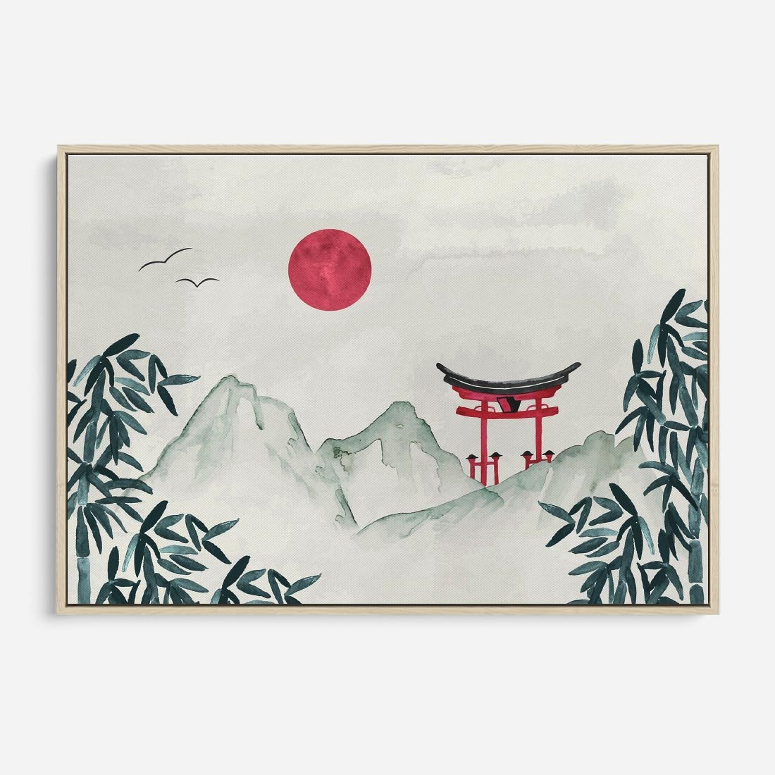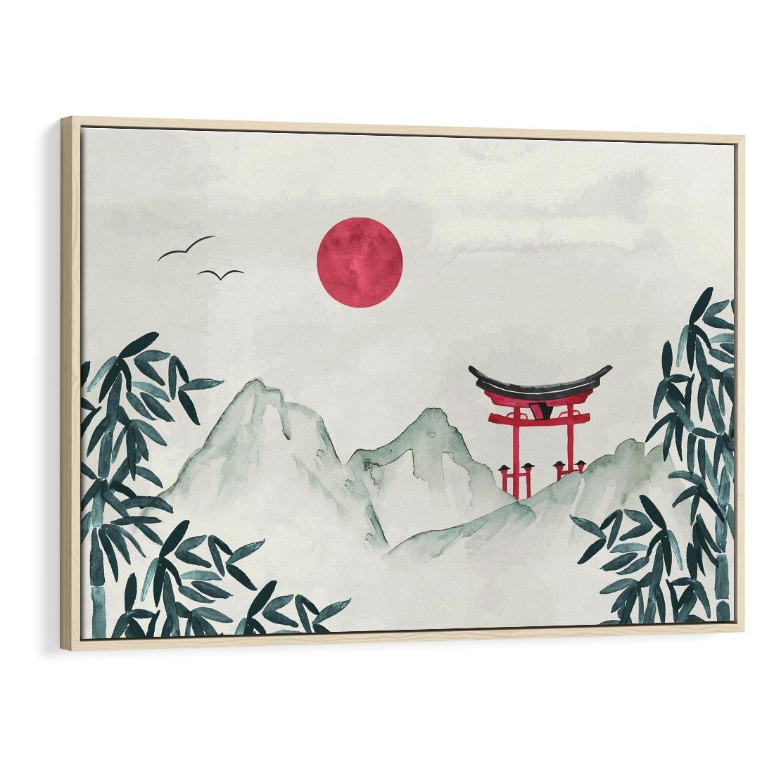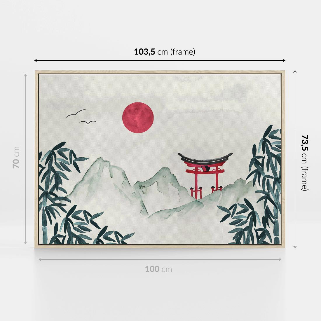 Obraz w ramie 100x70 - Słońce nad Górami - japoński krajobraz, góry - rama drewno
