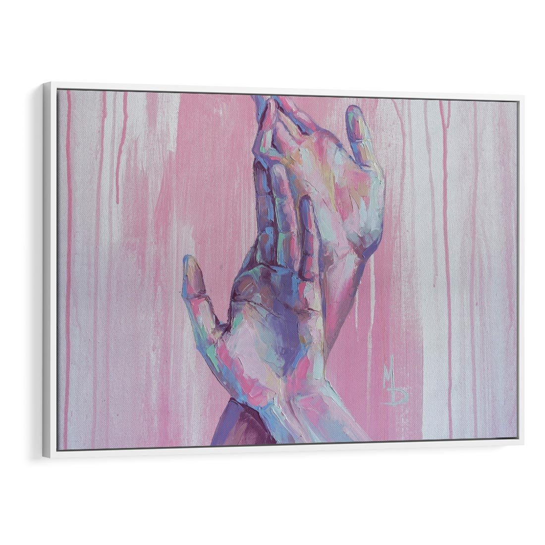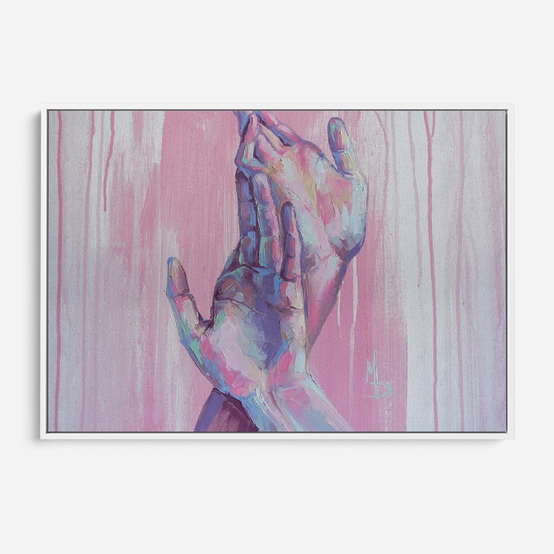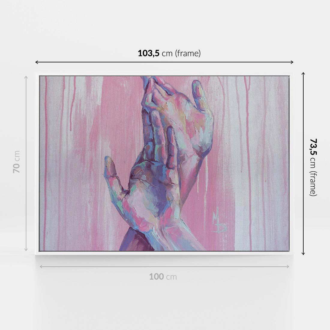 Obraz w ramie 100x70 - Splecione - obraz olejny, pastelowe kolory - rama biała