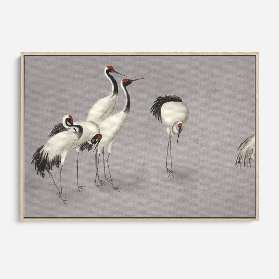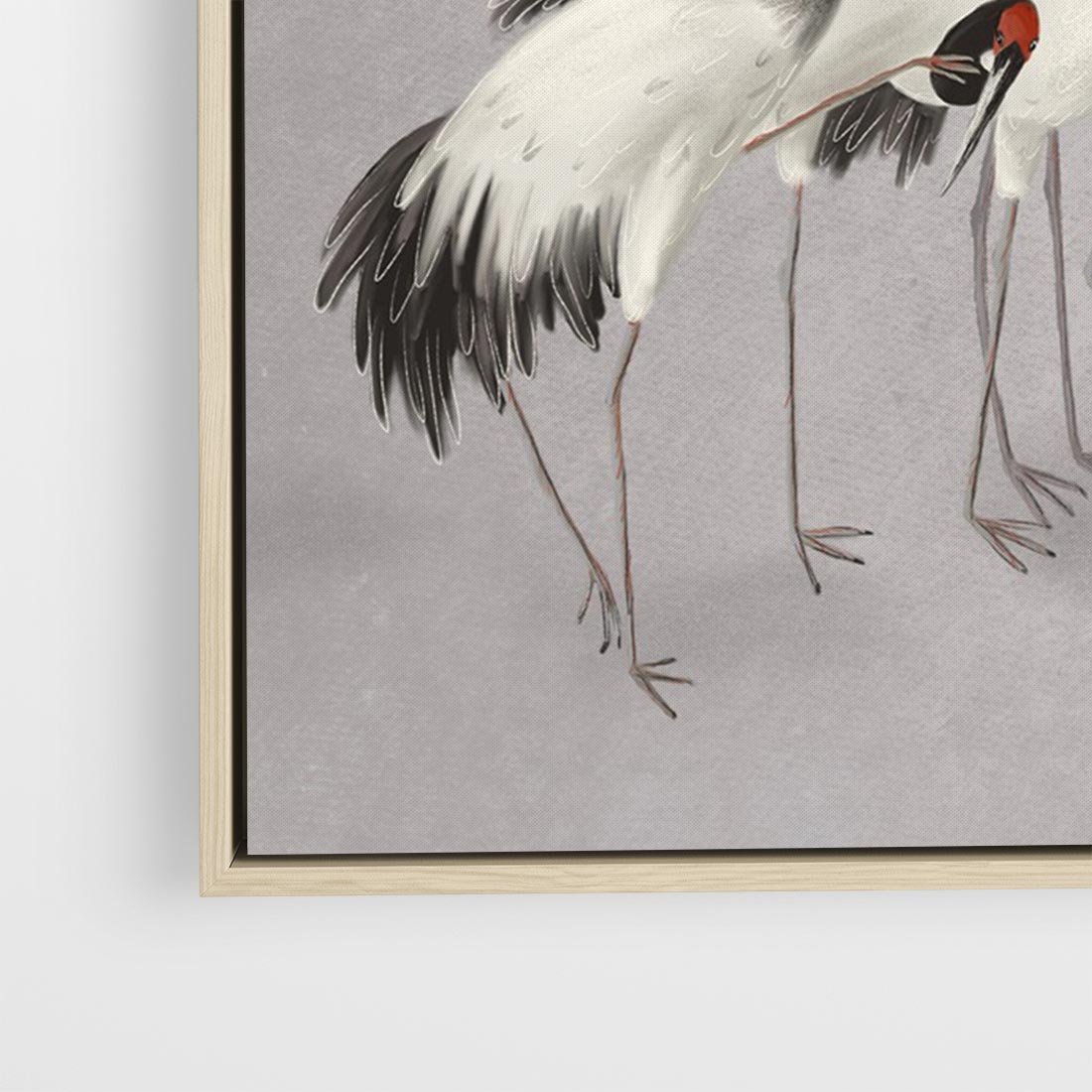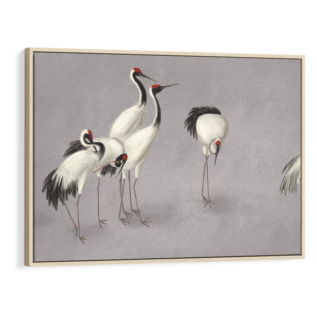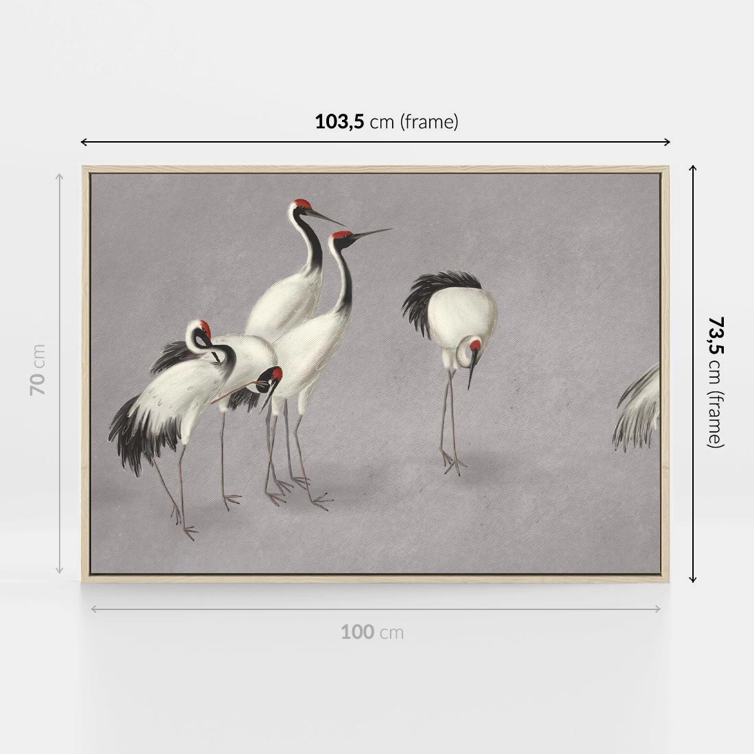 Obraz w ramie 100x70 - Spojrzenie wstecz w pędzlu - szkic rysunek, japońskie żurawie - rama drewno