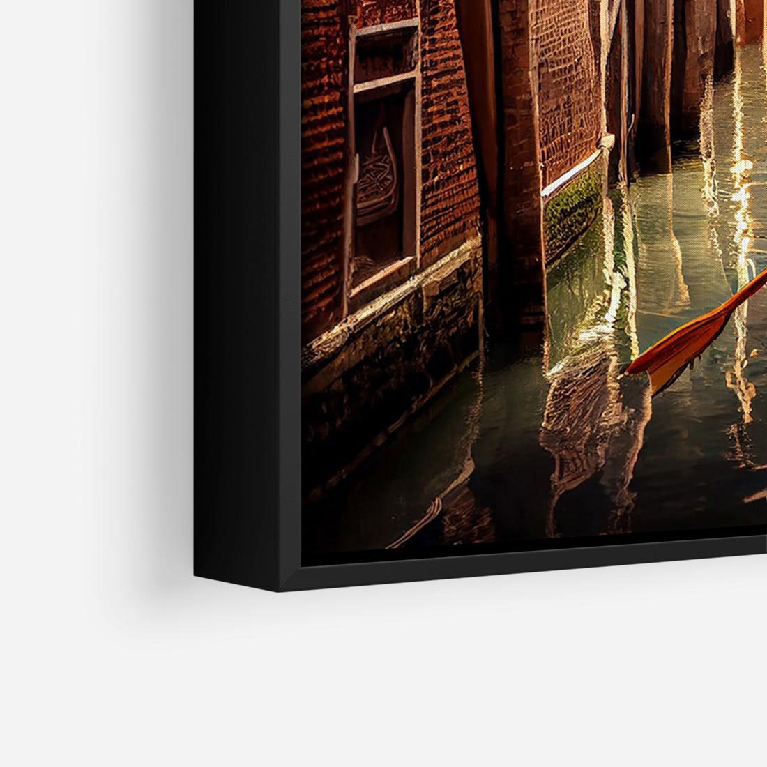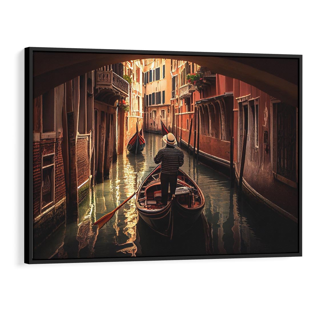 Obraz w ramie 100x70 - Spokojna Wenecja - gondolier w gondoli, kanały Wenecji - rama czarna