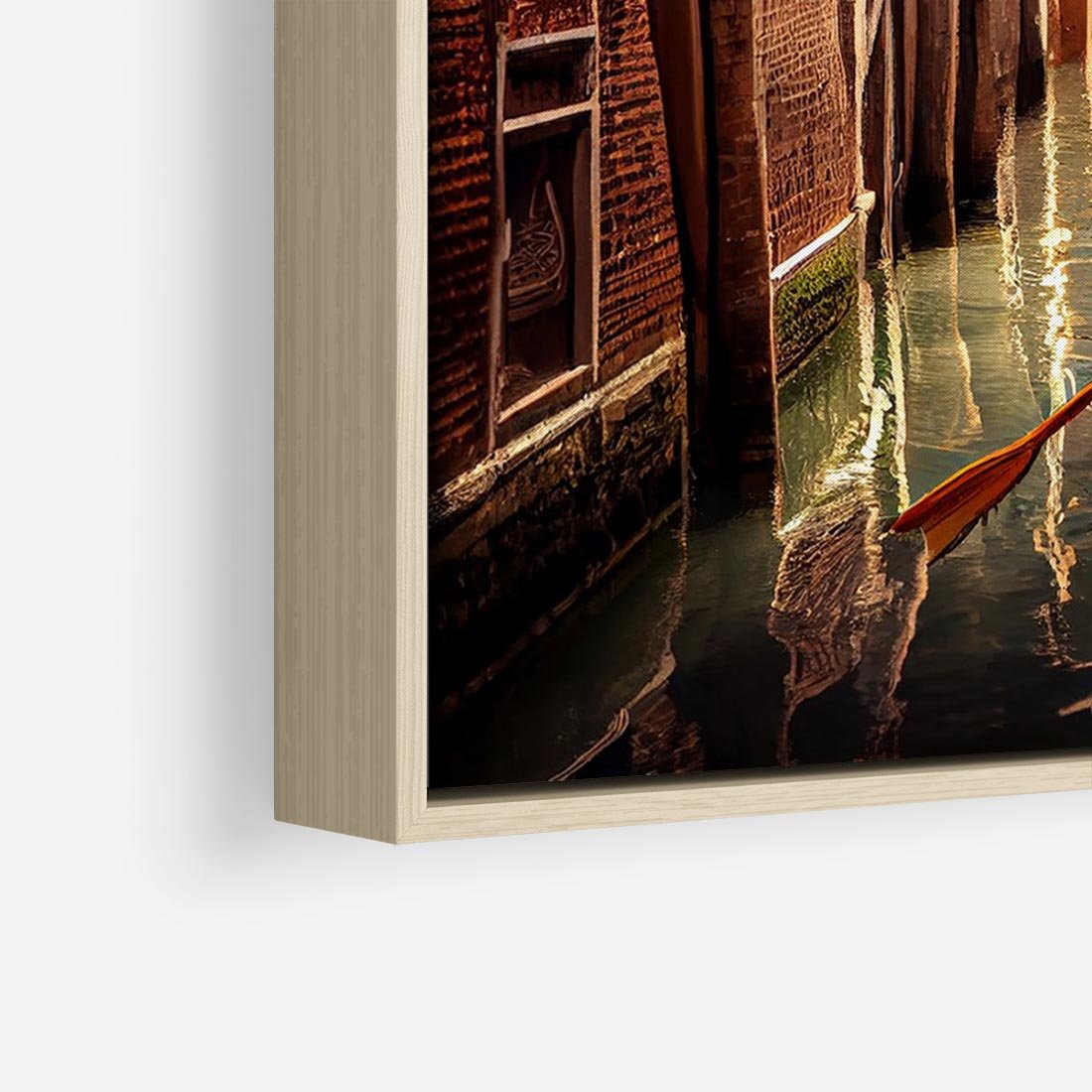 Obraz w ramie 100x70 - Spokojna Wenecja - gondolier w gondoli, kanały Wenecji - rama drewno