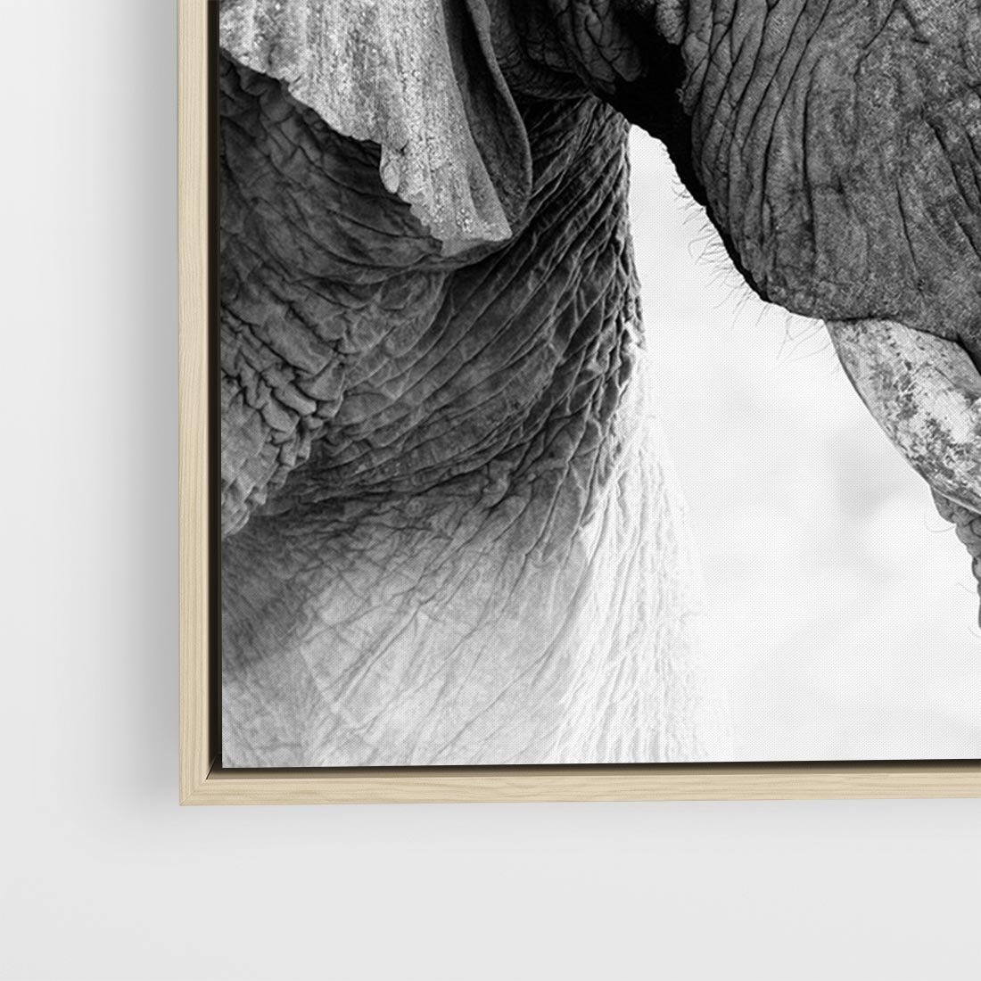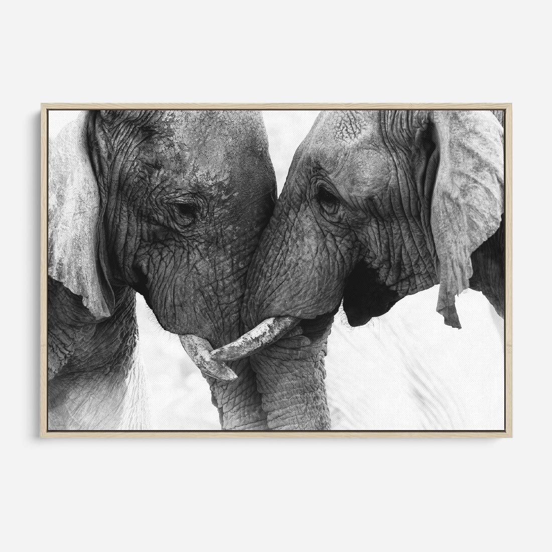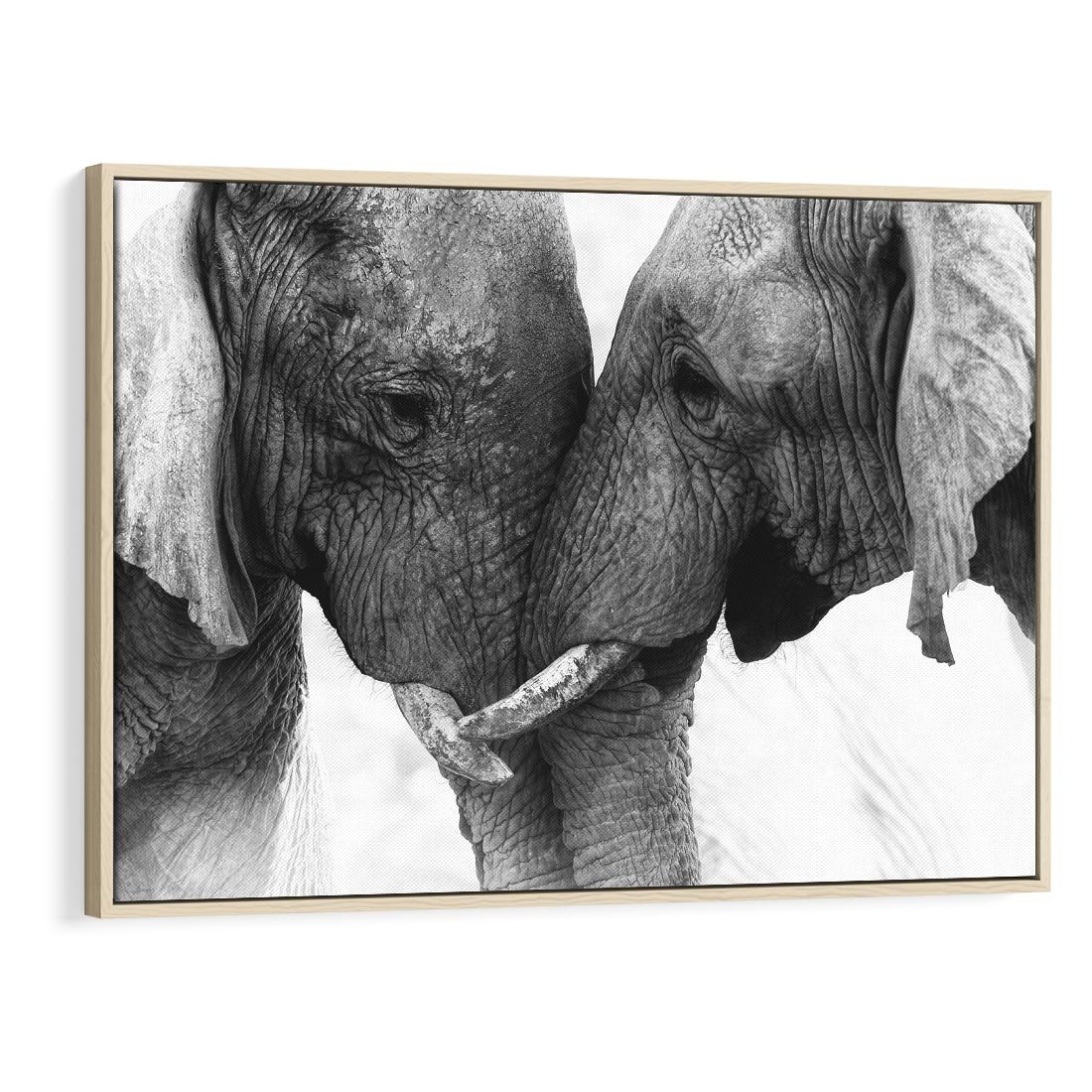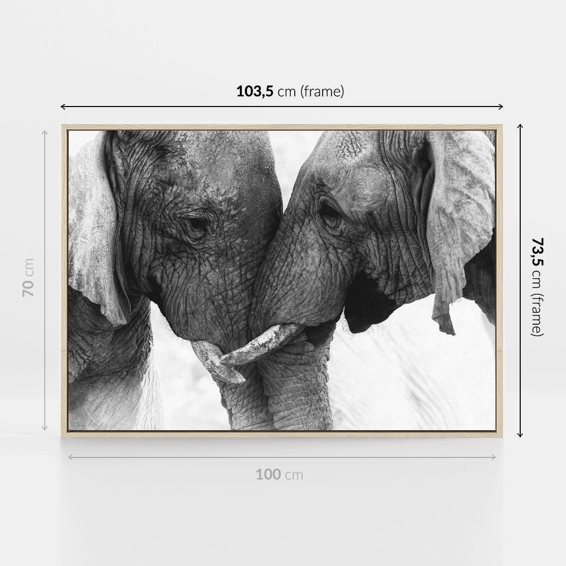 Obraz w ramie 100x70 - Spotkanie Mądrości - fotografia czarno biała, dwa słonie - rama drewno