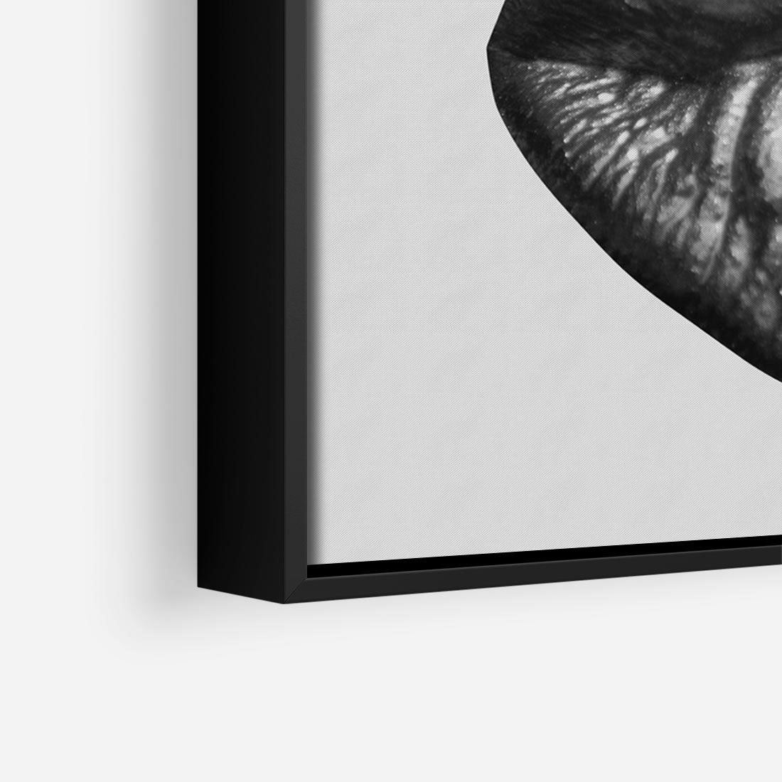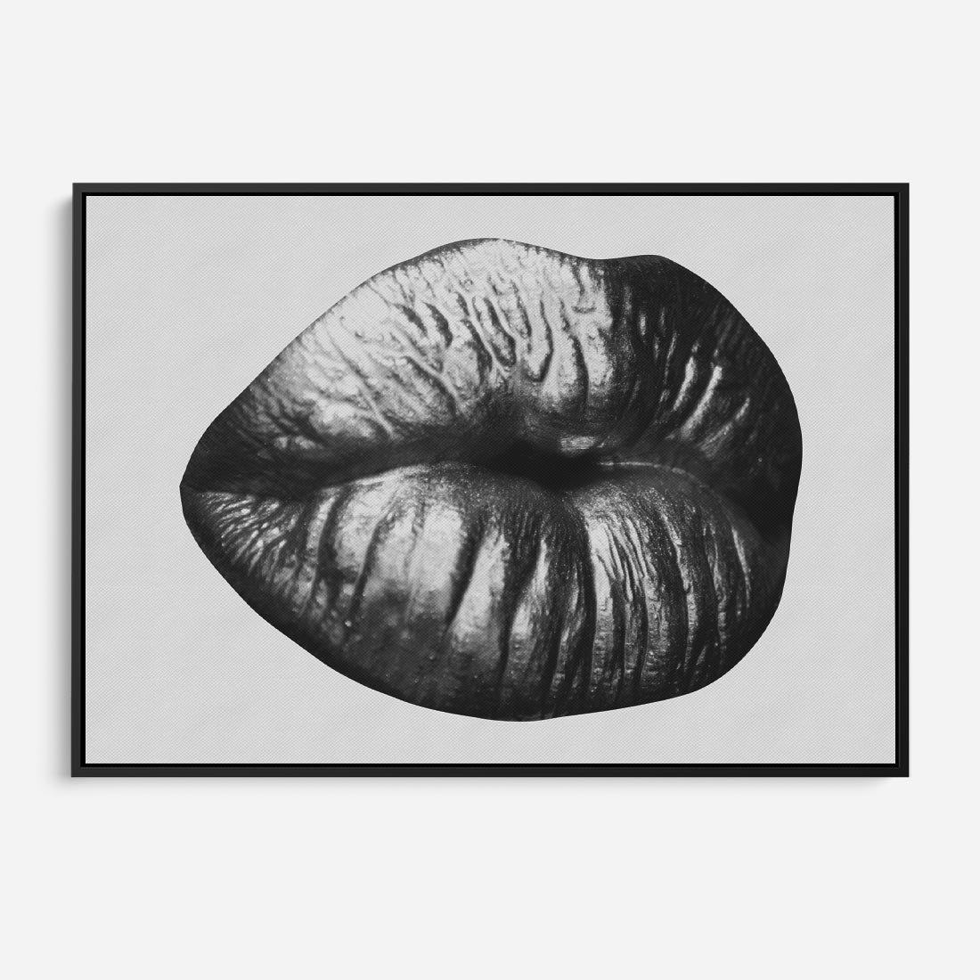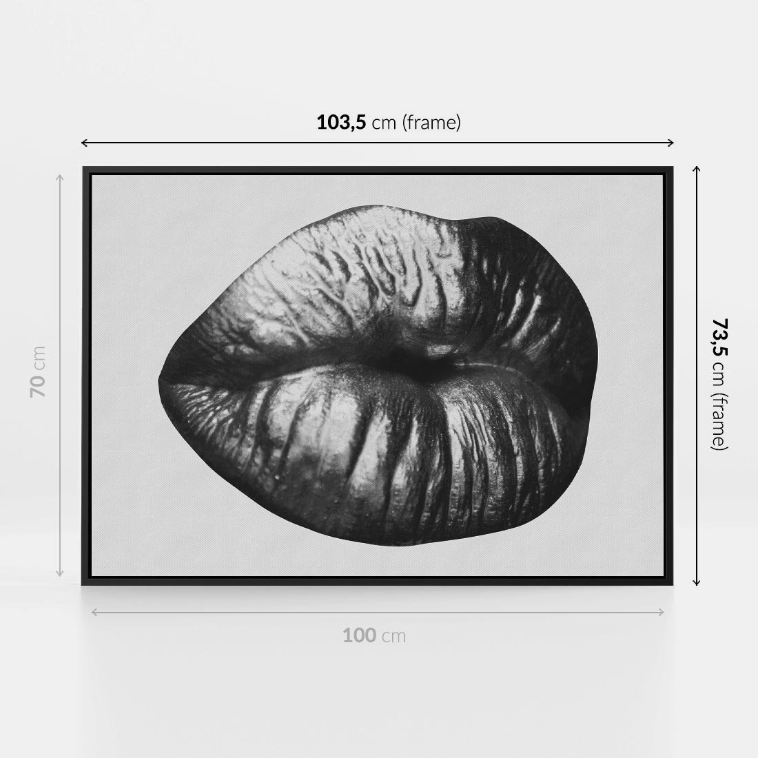 Obraz w ramie 100x70 - Srebrna Moc Wyrazu - srebrne usta, zbliżenie - rama czarna