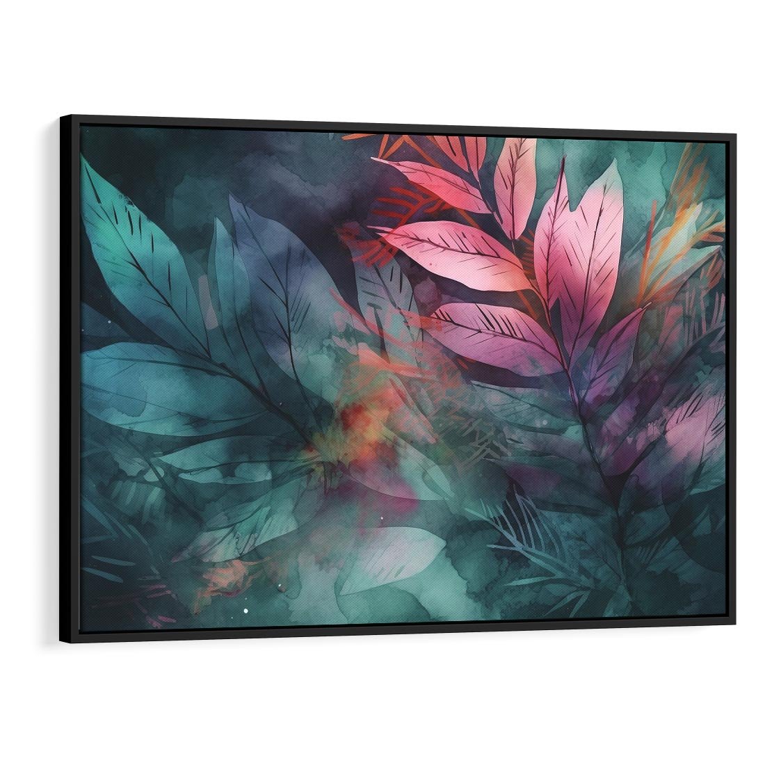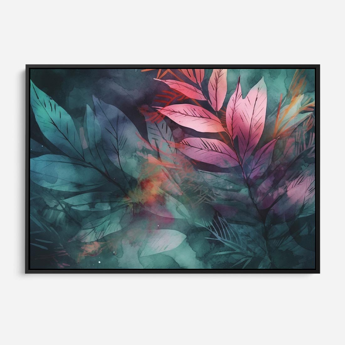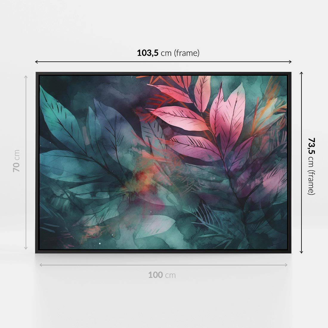Obraz w ramie 100x70 - Subtelne Zielone - pastelowe zielone liście, róż - rama czarna