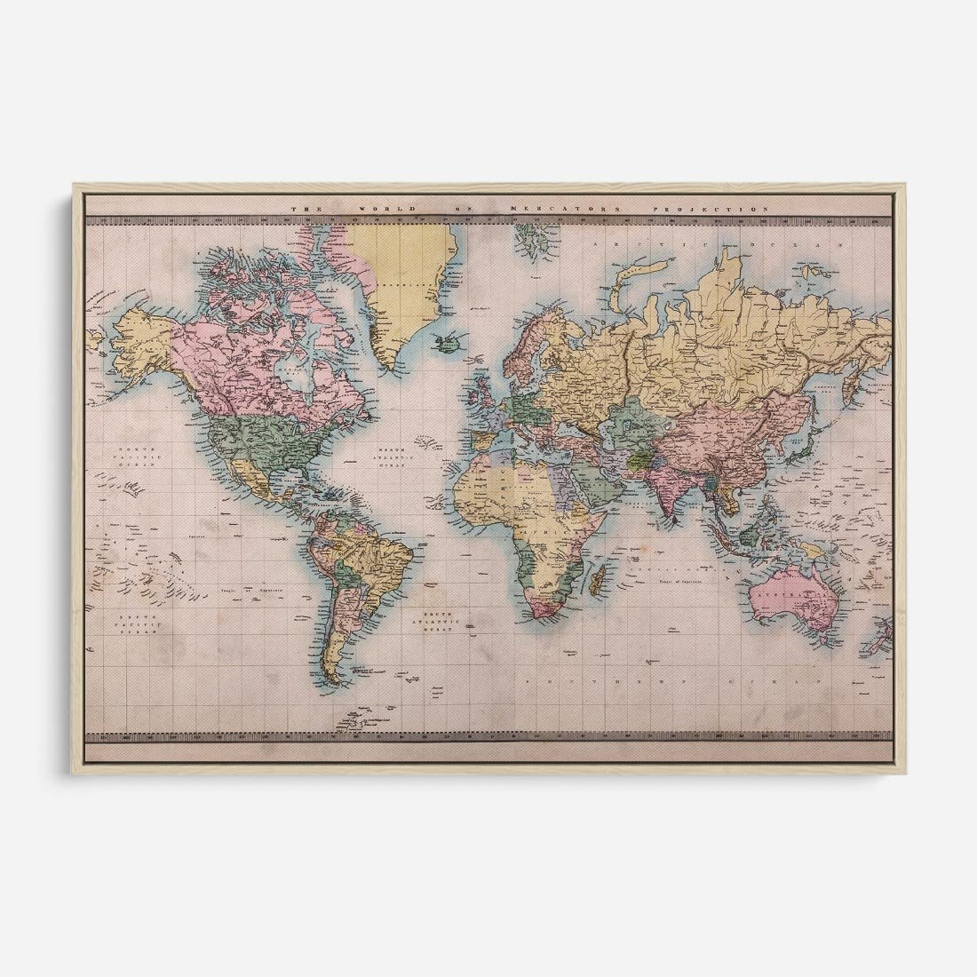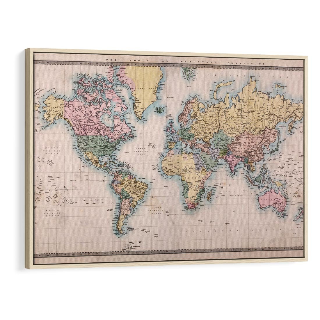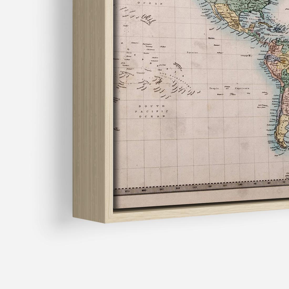 Obraz w ramie 100x70 - Światło Przeszłości - retro mapa świata, mapa - rama drewno