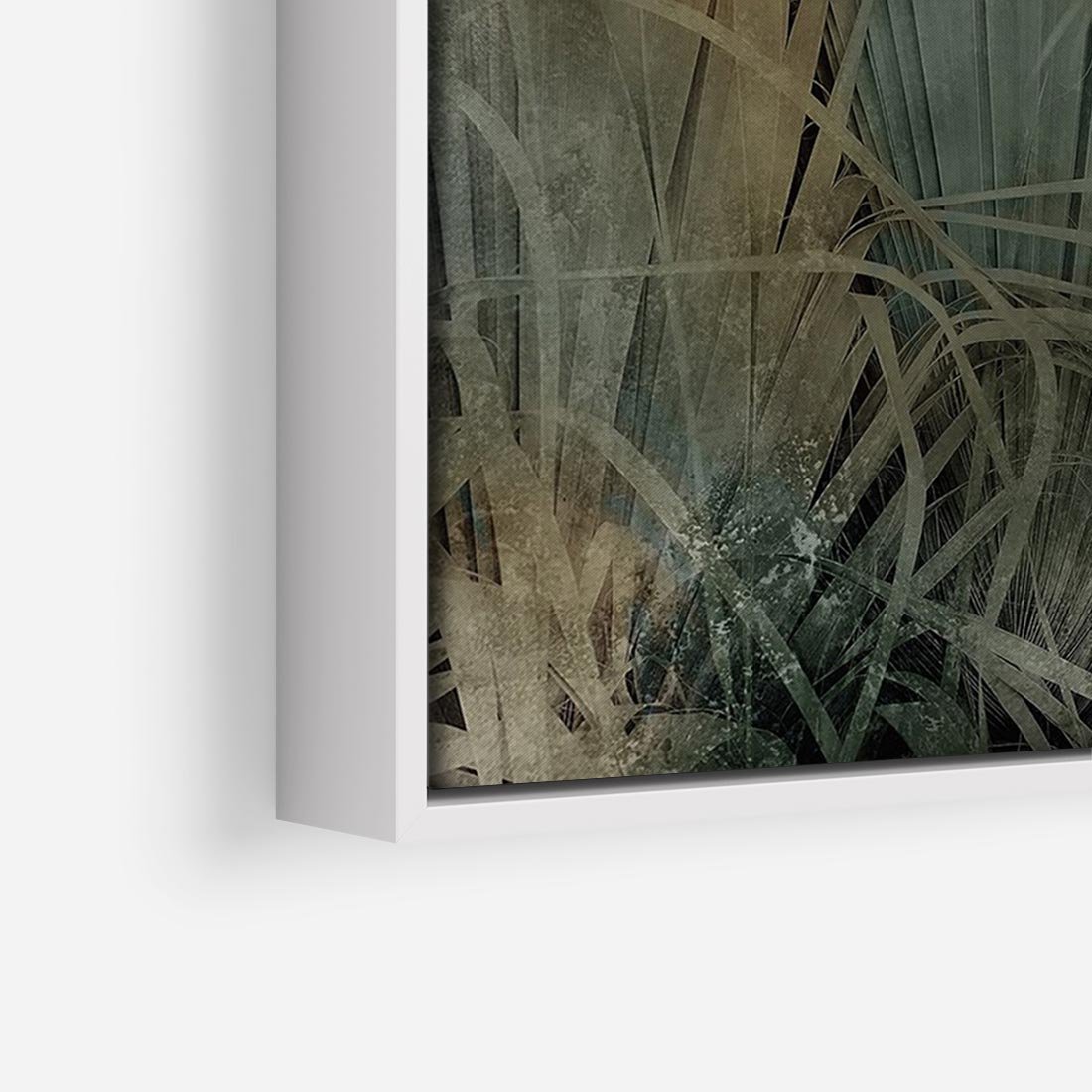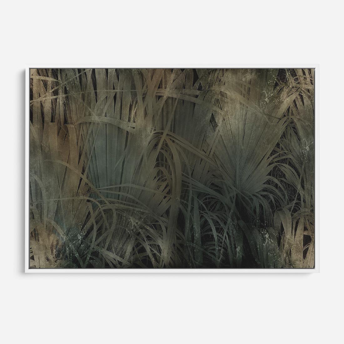 Obraz w ramie 100x70 - Światło w mroku duszy - liście traw, mroczny klimat - rama biała