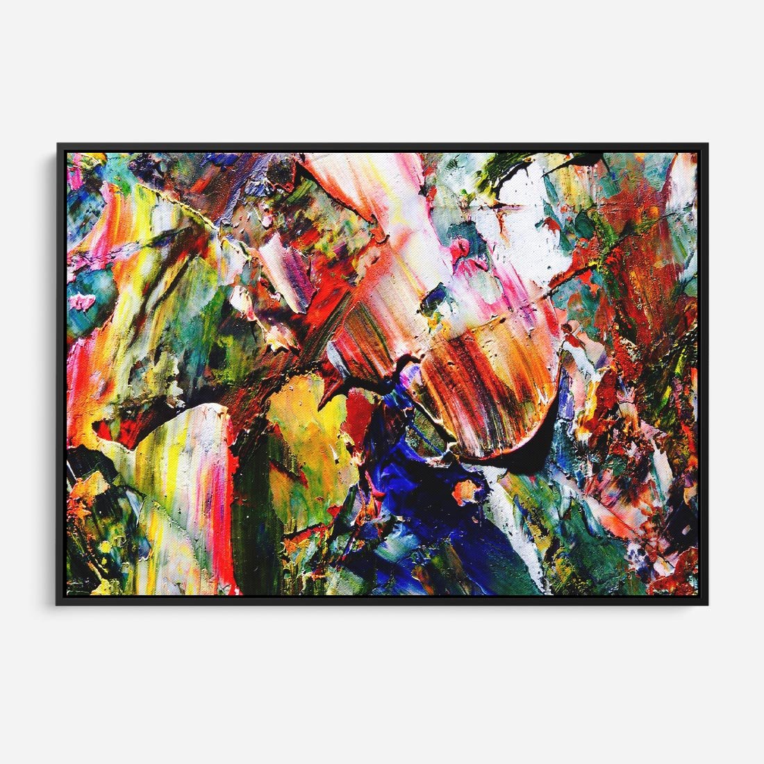 Obraz w ramie 100x70 - Szalejące ognie kolorów - abstrakcja, farby olejne - rama czarna