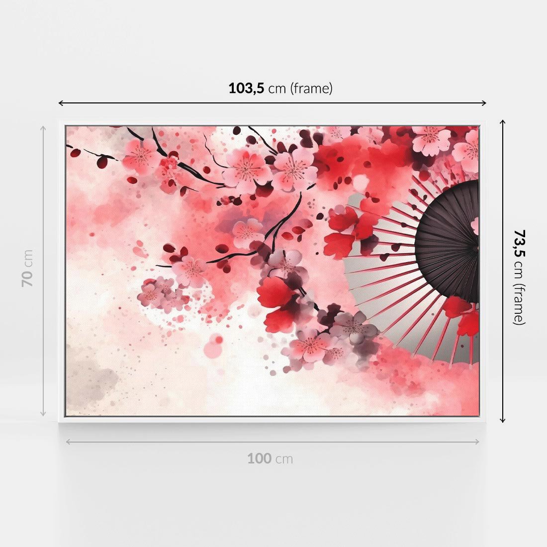 Obraz w ramie 100x70 - Szept Kwitnącej Wiśni - japoński parasol, liście - rama biała