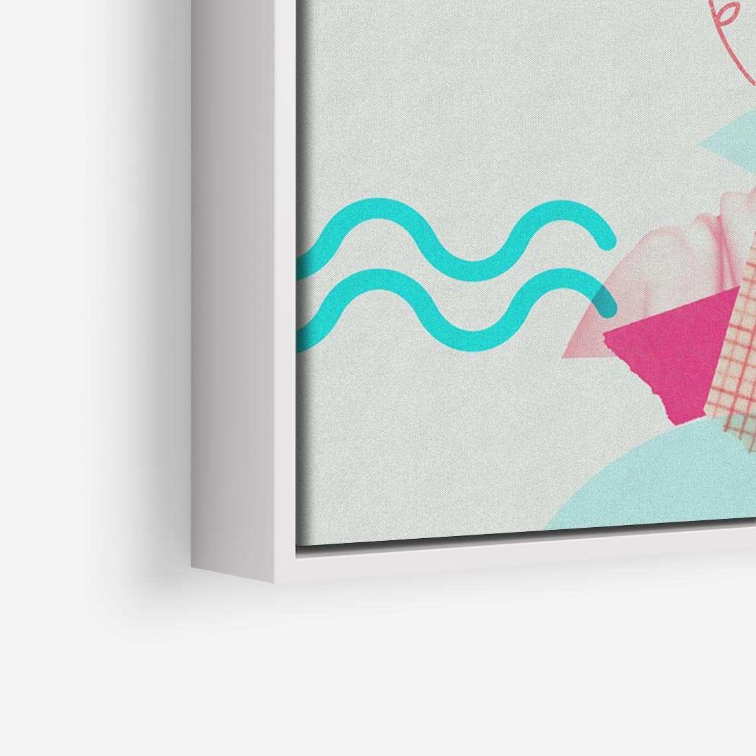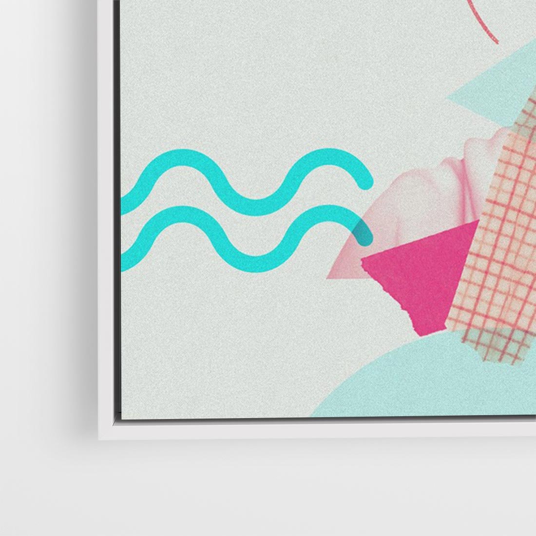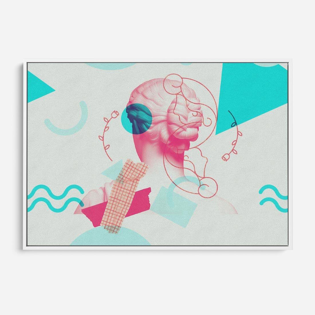 Ten nowoczesny kolaż łączy antyczną rzeźbę kobiety z elementami sztuki współczesnej. W delikatnych odcieniach różowego ukazuje piękno ludzkiej formy, przenosząc je w nowoczesny kontekst. To unikalne dzieło sztuki przyciąga wzrok i inspiruje do refleksji nad pięknem i ewolucją sztuki przez wieki.
