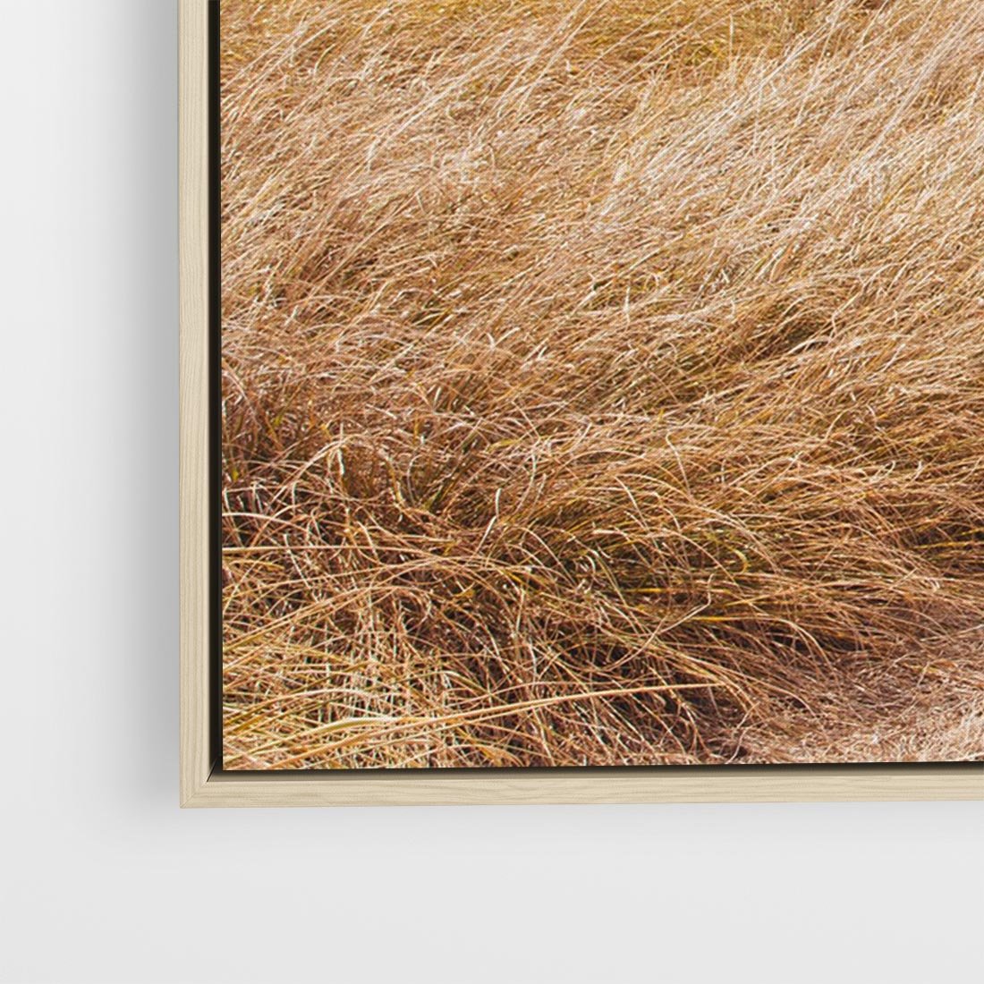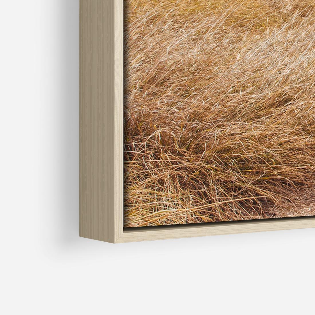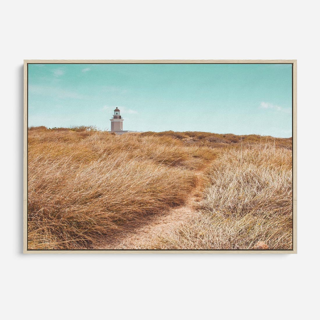 Obraz w ramie 100x70 - Tajemnicza Ścieżka - latarnia morska w oddali, suche trawy - rama drewno