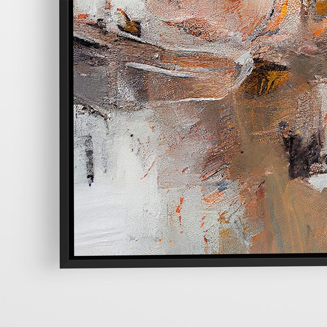 To wyrafinowane dzieło sztuki przyciąga uwagę swoimi subtelnymi teksturami farb i harmonijnymi, jasnymi stonowanymi kolorami, takimi jak beż i brąz. Abstrakcyjne formy tworzą elegancką kompozycję, która emanuje spokojem i klasyką. Idealny wybór dla osób ceniących delikatną estetykę i poszukujących artystycznej inspiracji w swoim wnętrzu.