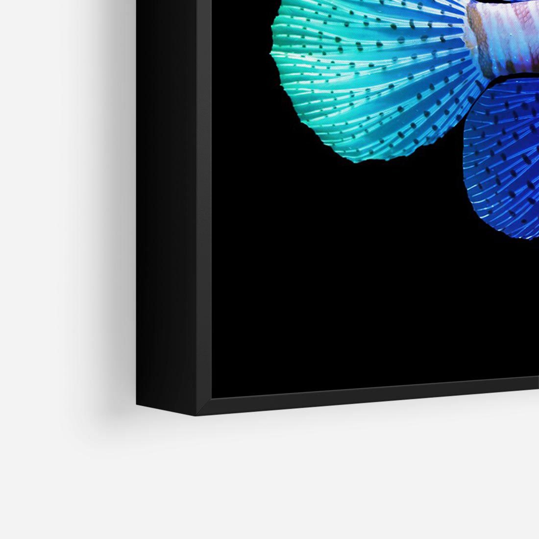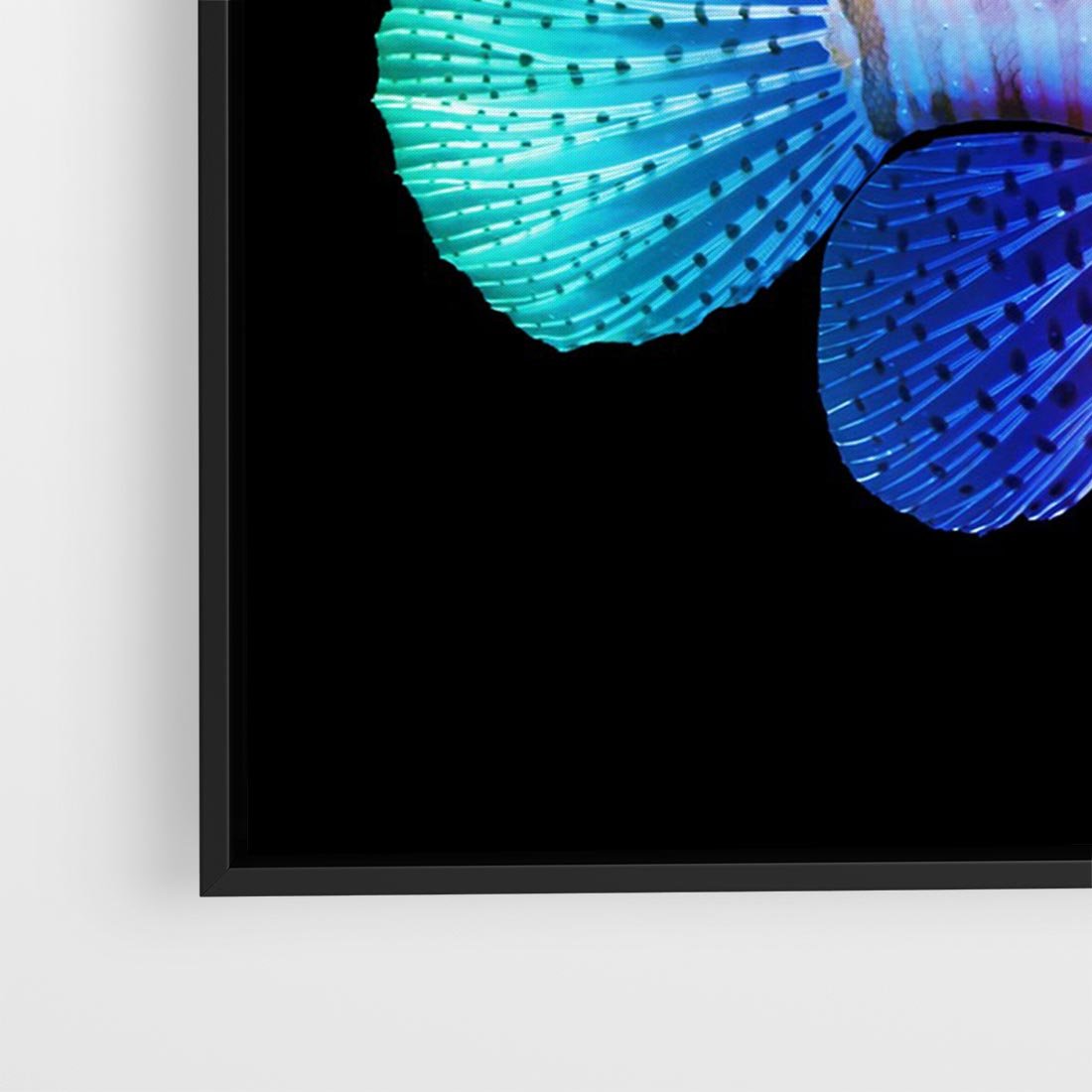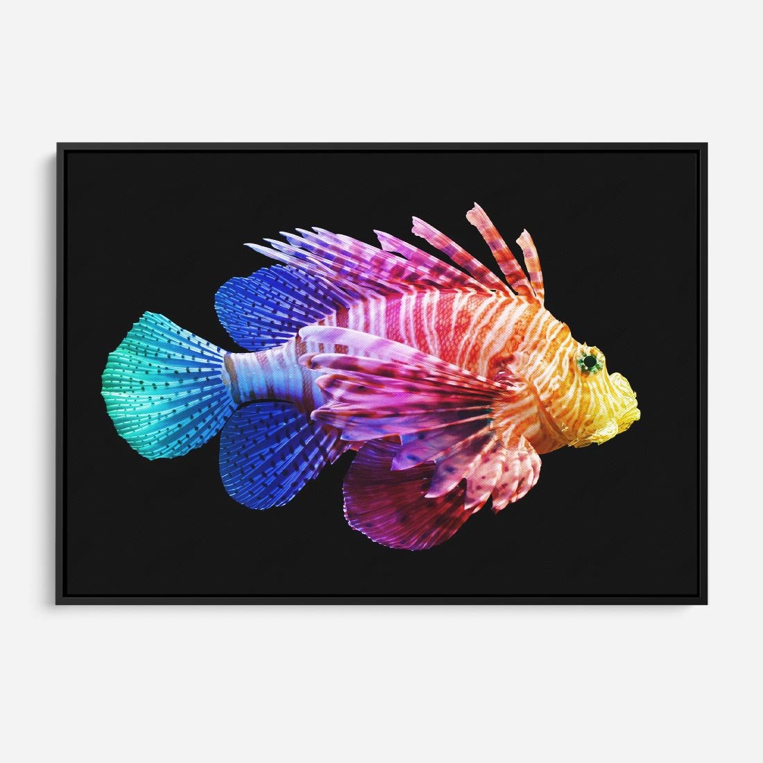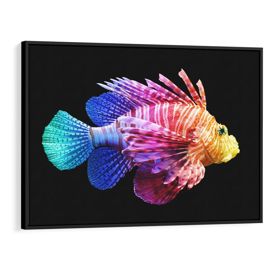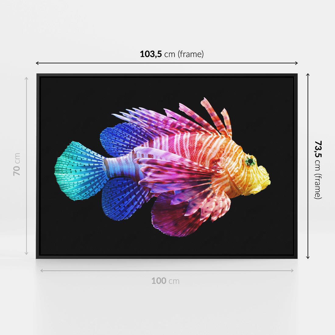 Obraz w ramie 100x70 - Tęczowa Piękność - kolorowa tęczowa ryba, mocny akcent na czarnym tle - rama czarna