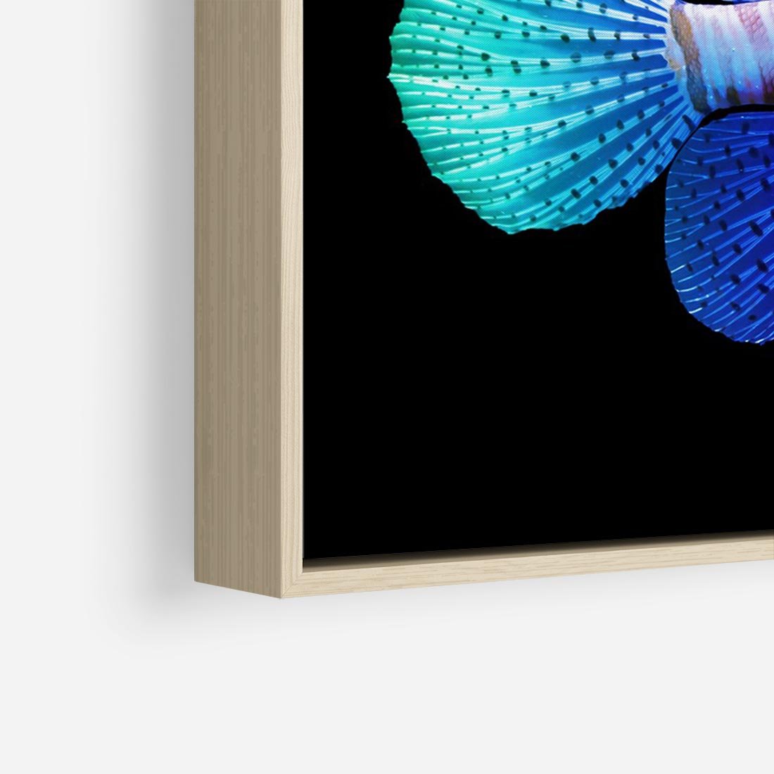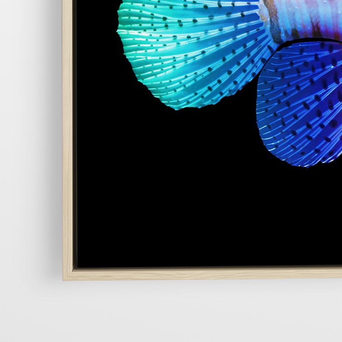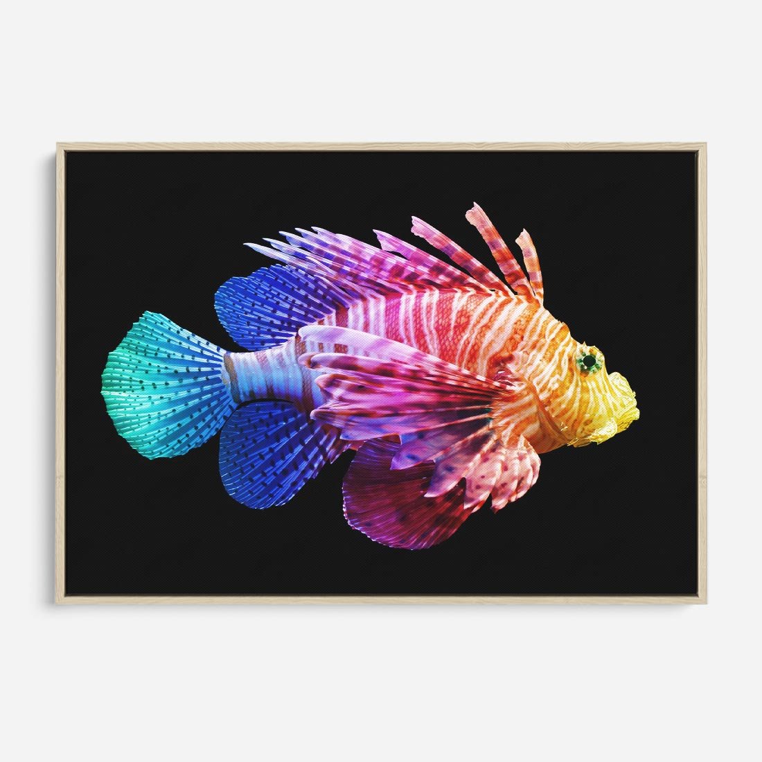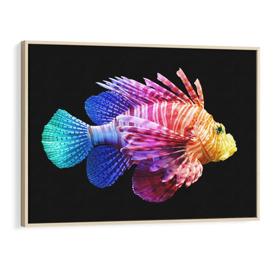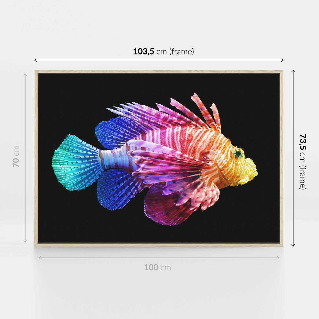 Obraz w ramie 100x70 - Tęczowa Piękność - kolorowa tęczowa ryba, mocny akcent na czarnym tle - rama drewno