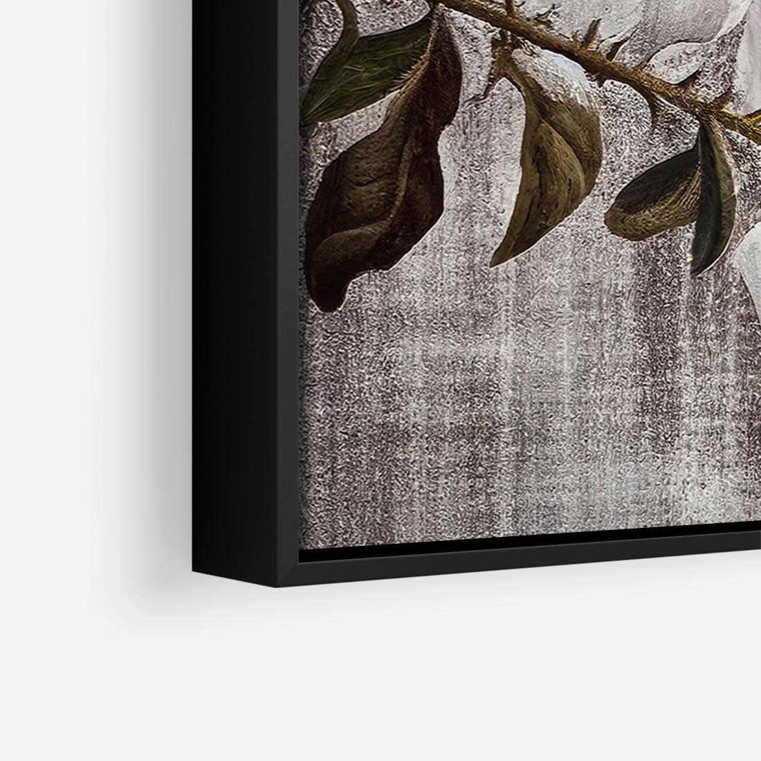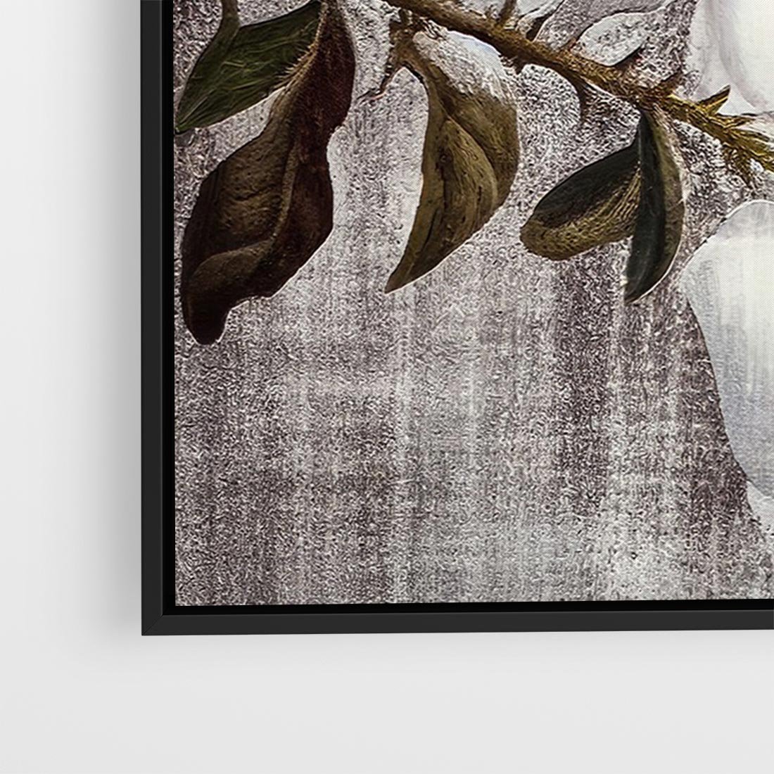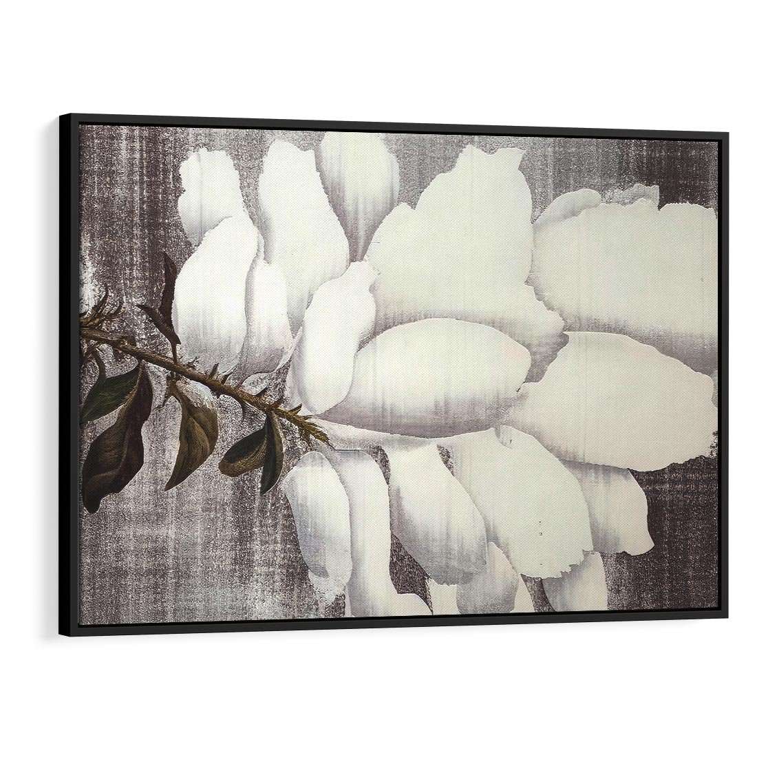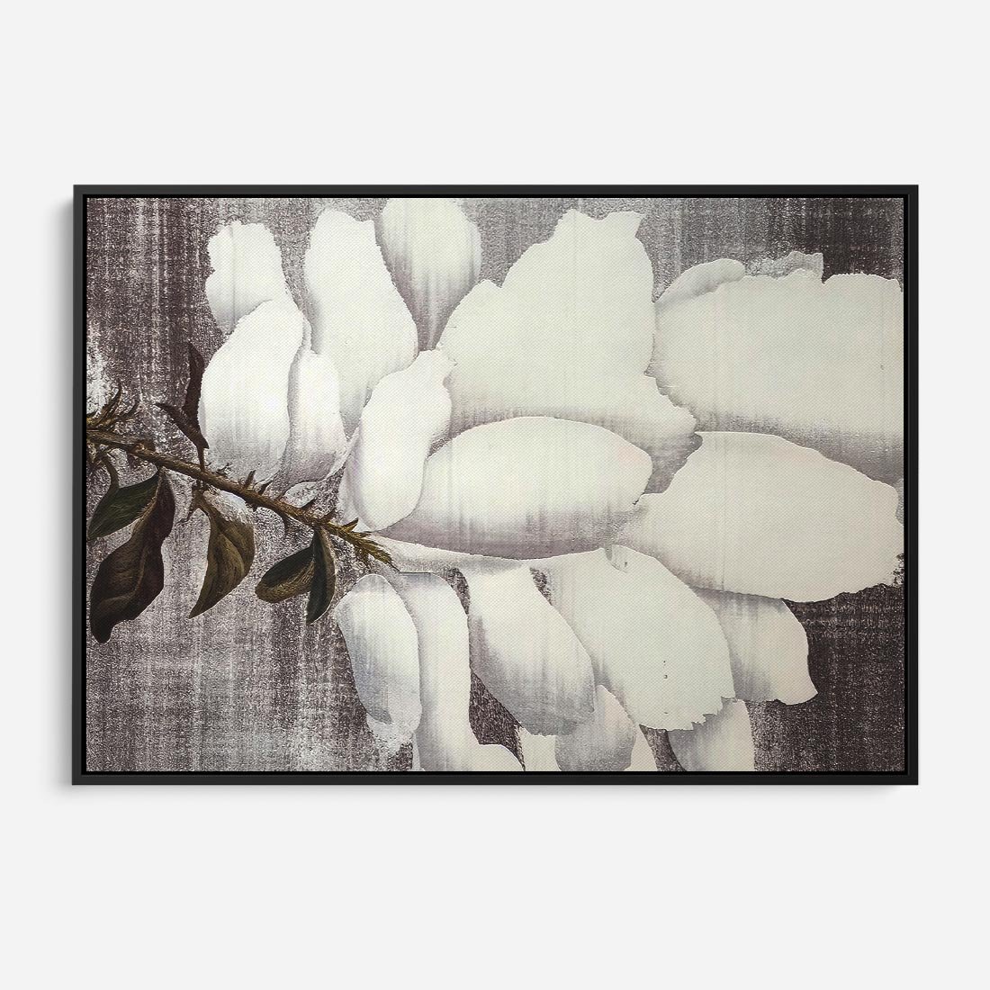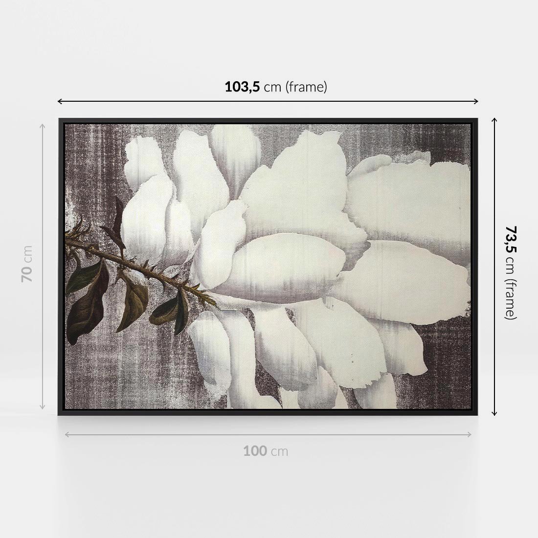 Ten wyjątkowy obraz na płótnie prezentuje białe kwiaty o dużych płatkach, ukazane na delikatnym szarym tle. Kanwa, na której malowano ten kwiatowy motyw, dodaje tekstury i głębi dziełu, nadając mu unikalnego charakteru. To elegancka dekoracja, która wzbogaci Twoje wnętrze o subtelny akcent natury i estetyki.