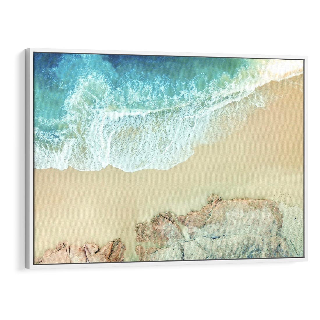 Odkryj urok nadmorskiej przygody dzięki temu fascynującemu obrazowi. Widok z lotu ptaka ukazuje turkusową wodę i błyszczącą plażę. To dzieło sztuki stworzone dla miłośników morskich krajobrazów i spokoju. Doskonały akcent dla tych, którzy pragną wprowadzić do swojego wnętrza powiew świeżego powietrza i uroku morskich pejzaży.