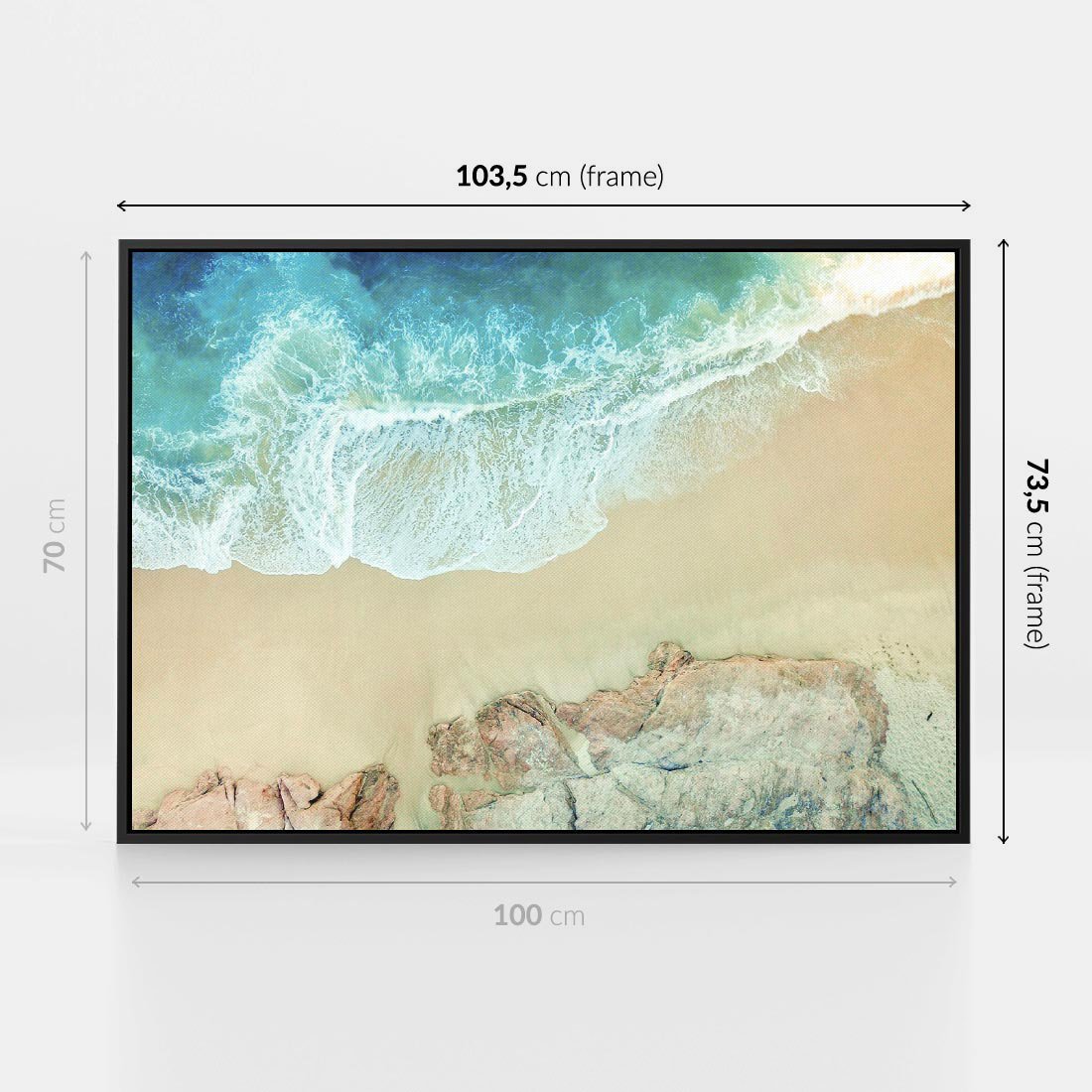 Odkryj urok nadmorskiej przygody dzięki temu fascynującemu obrazowi. Widok z lotu ptaka ukazuje turkusową wodę i błyszczącą plażę. To dzieło sztuki stworzone dla miłośników morskich krajobrazów i spokoju. Doskonały akcent dla tych, którzy pragną wprowadzić do swojego wnętrza powiew świeżego powietrza i uroku morskich pejzaży.