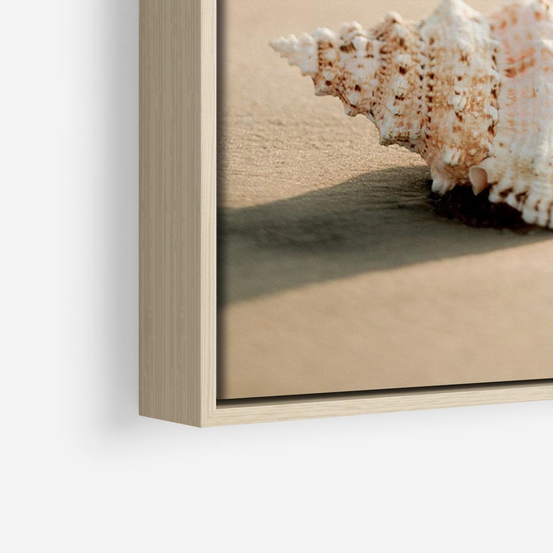 Obraz w ramie 100x70 - Urok plażowej muszelki - fotografia, muszla na plaży - rama drewno