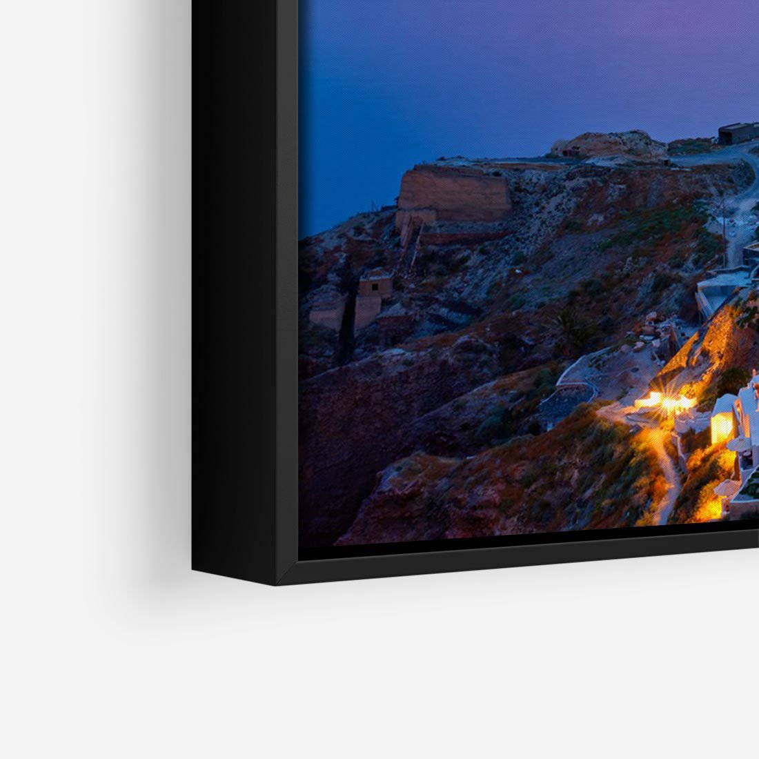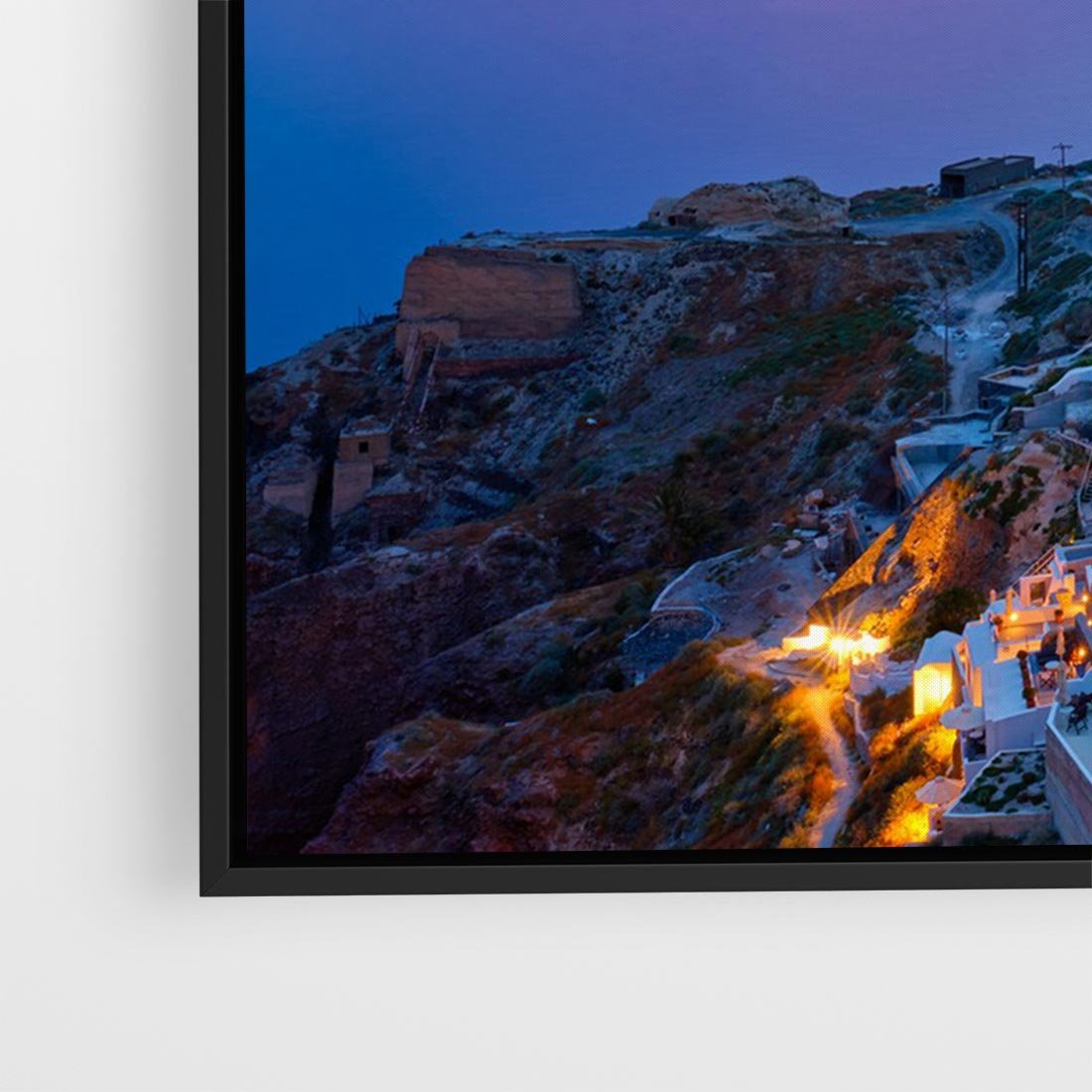 Obraz w ramie 100x70 - Wyblakłe wspomnienia gwiazd - Santorini, wieczór - rama czarna
