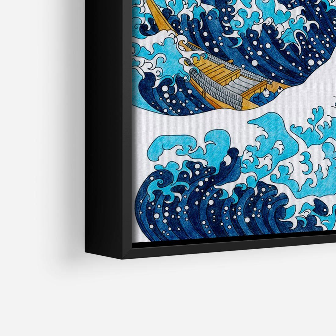 Obraz w ramie 100x70 - Wzburzone Morze - wielka fala w kaganawie, Hokusai - rama czarna