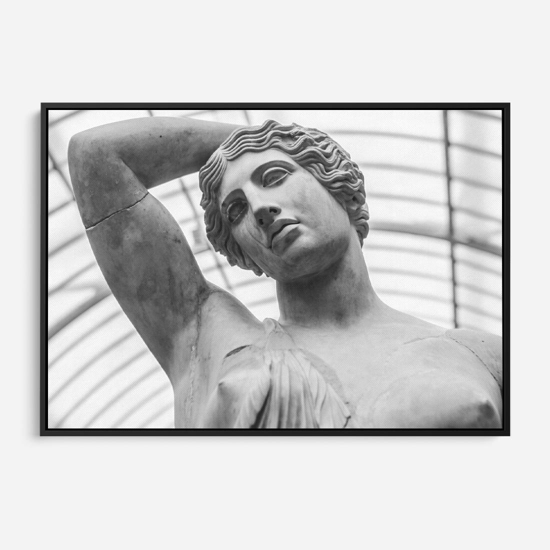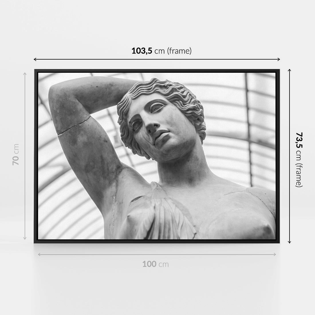 Obraz w ramie 100x70 - Zaklęta w Kamieniu - antyczna rzeźba kobiety na fotografii, czarno biała - rama czarna