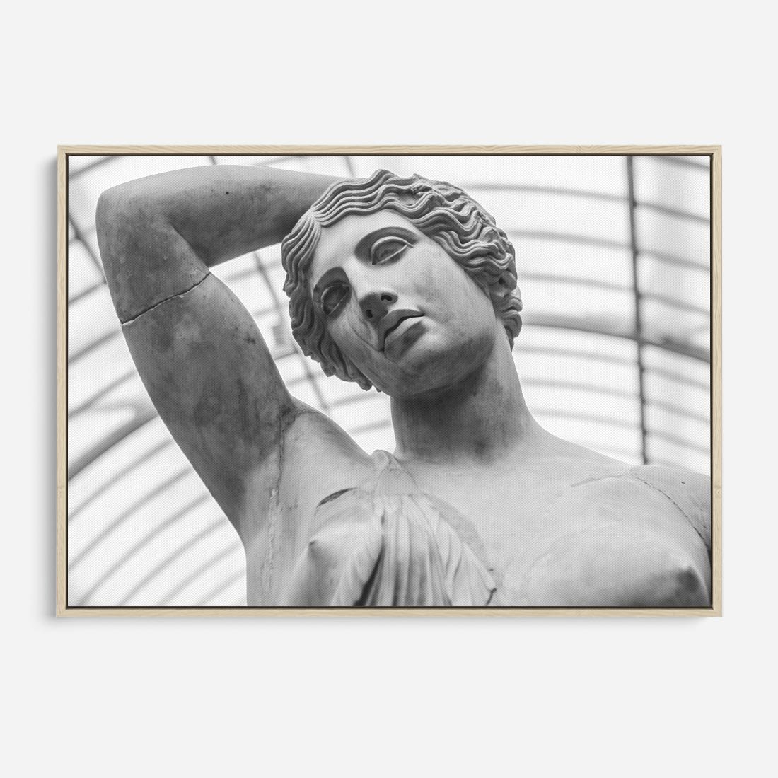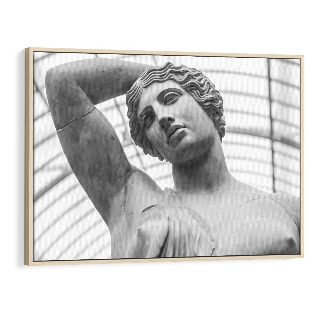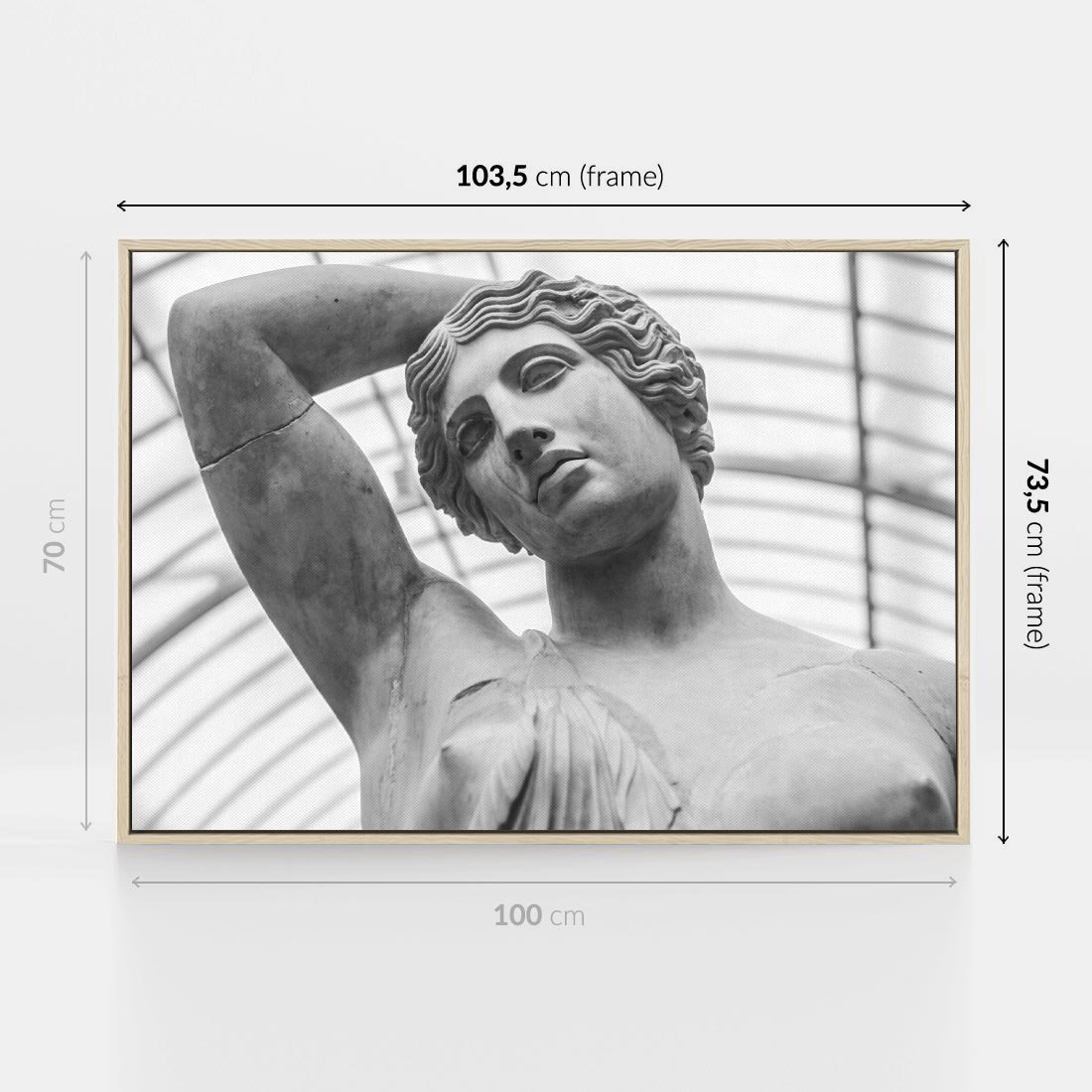 Obraz w ramie 100x70 - Zaklęta w Kamieniu - antyczna rzeźba kobiety na fotografii, czarno biała - rama drewno
