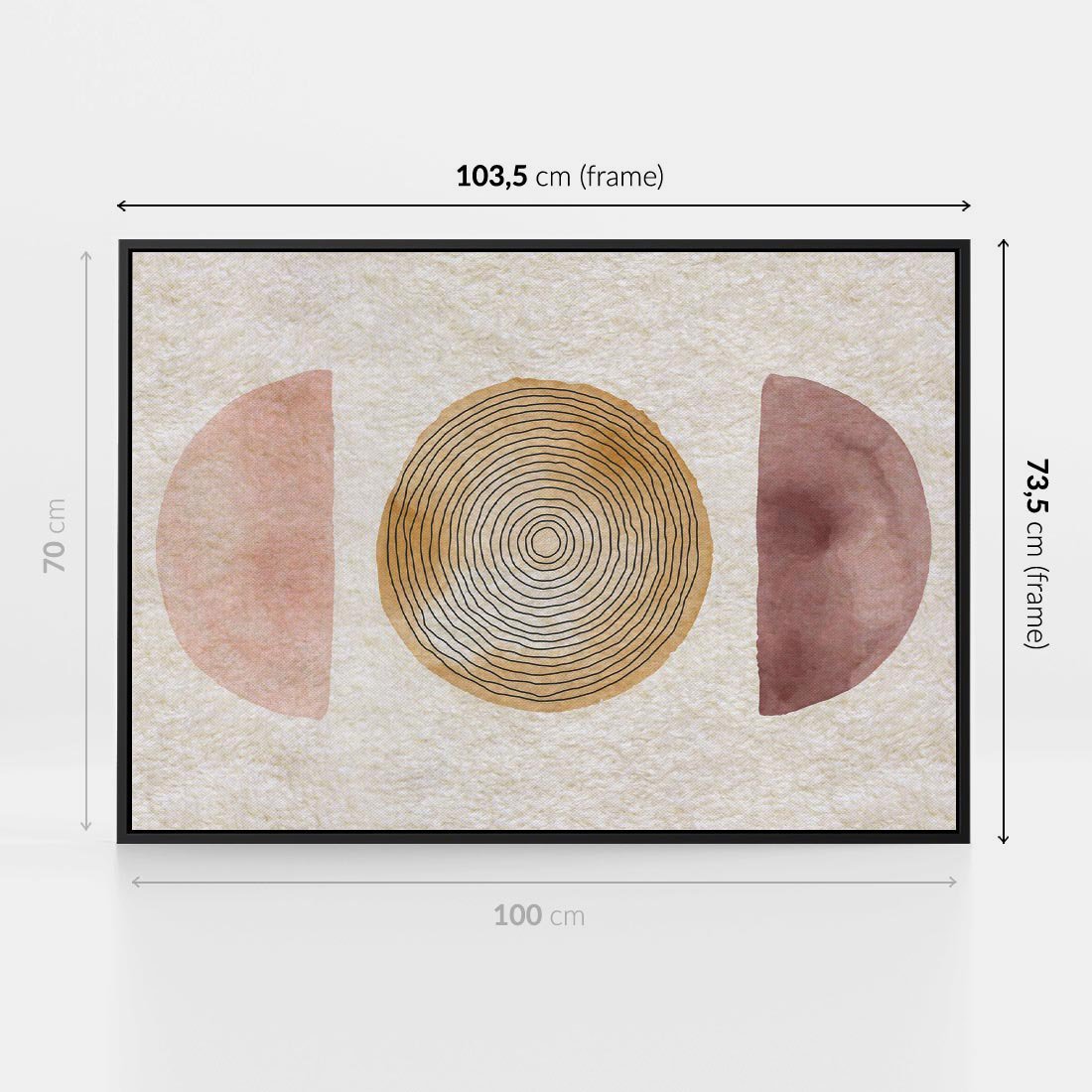 Obraz w ramie 100x70 - Zapisane w promieniach słońca - beżowe strukturalne tło, koła - rama czarna