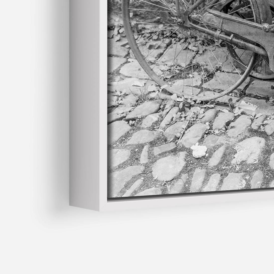 Obraz w ramie 100x70 - Zapomniany Urok - czarno biała fotografia, stary rower oparty o mur - rama biała