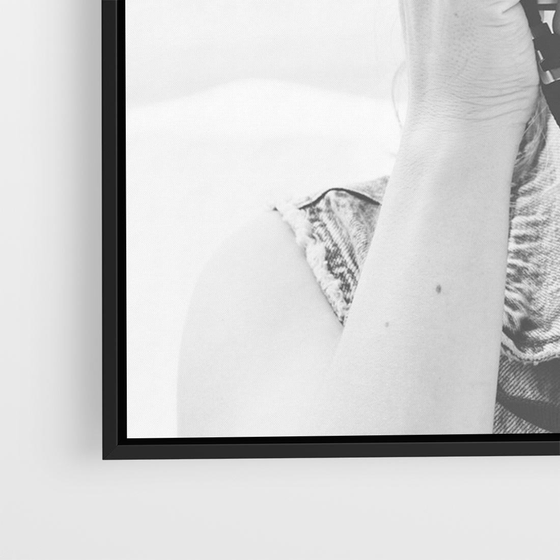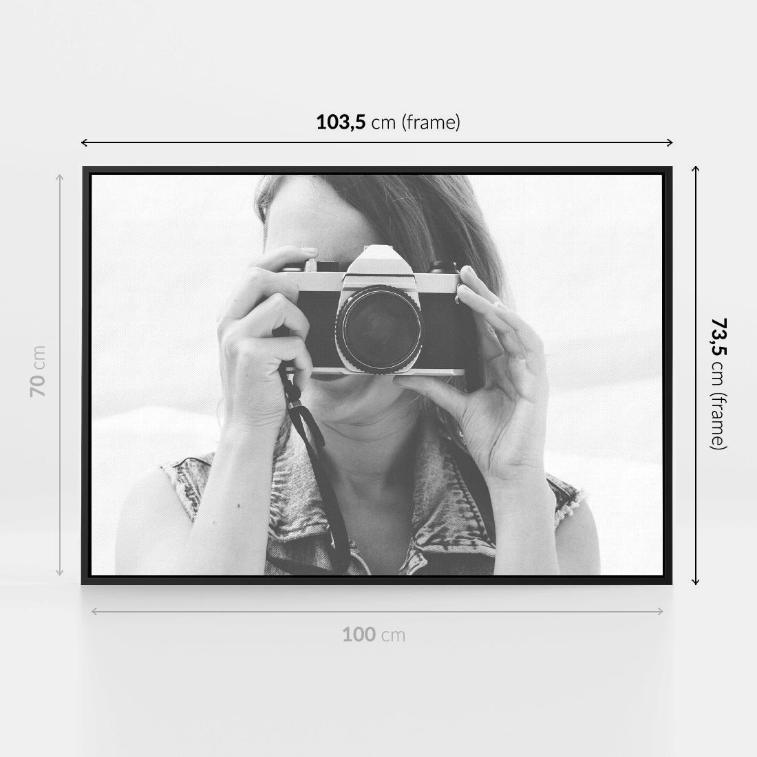 Obraz w ramie 100x70 - Zrób mi Zdjęcie - fotografia, kobieta z aparatem - rama czarna