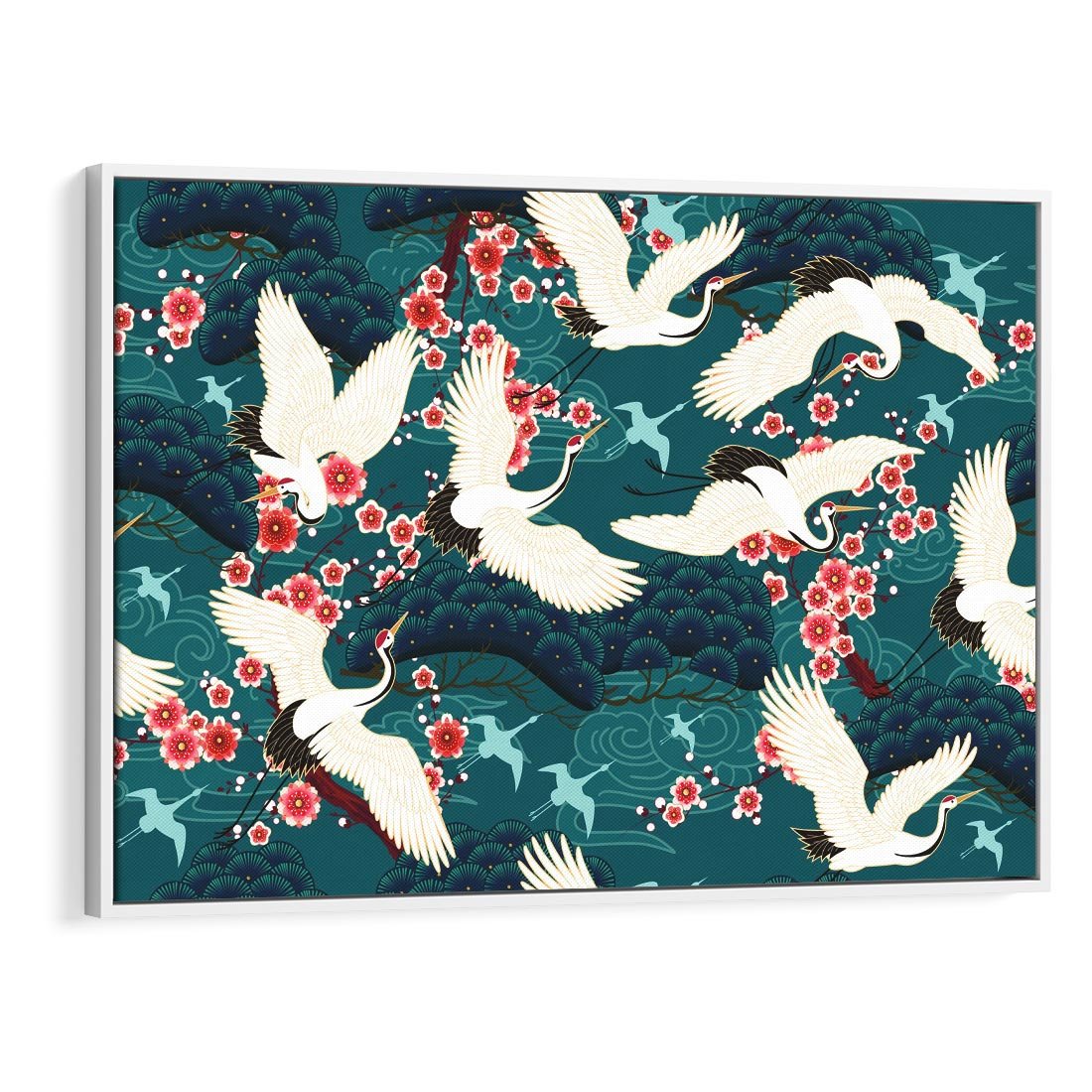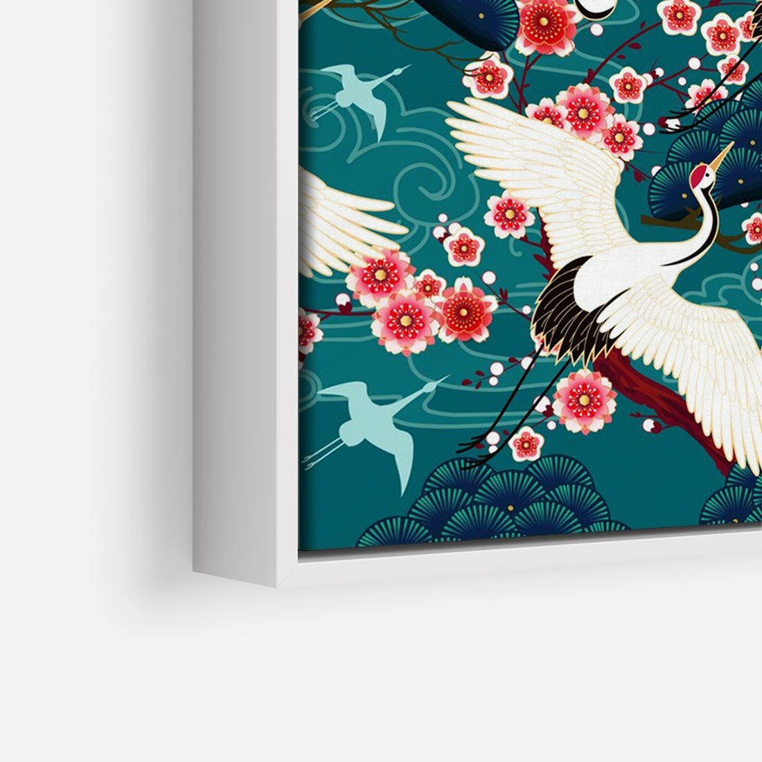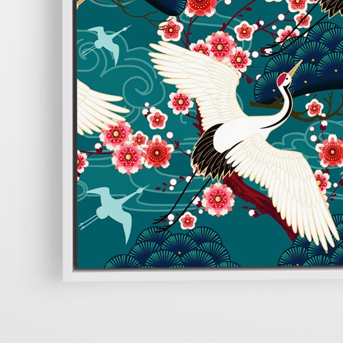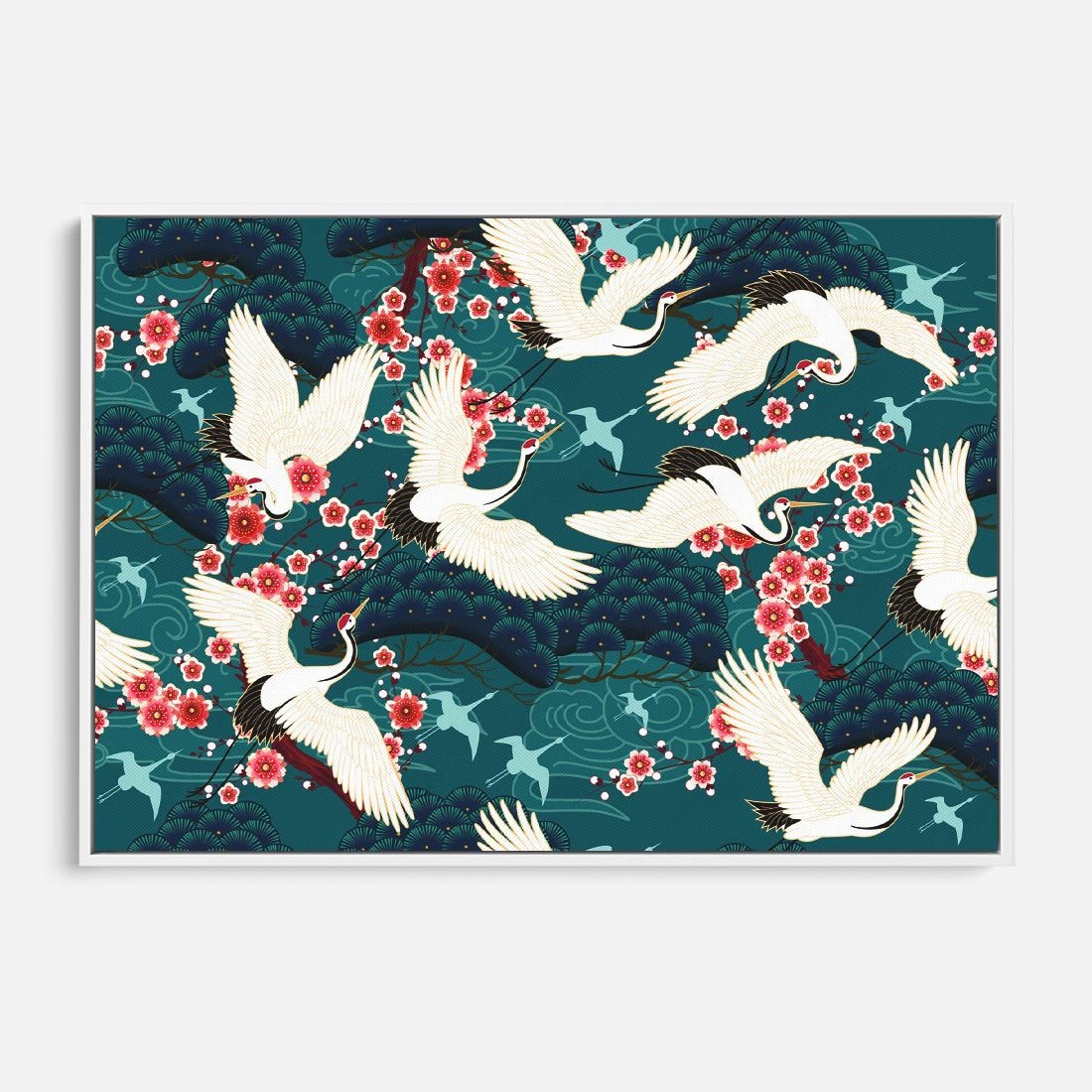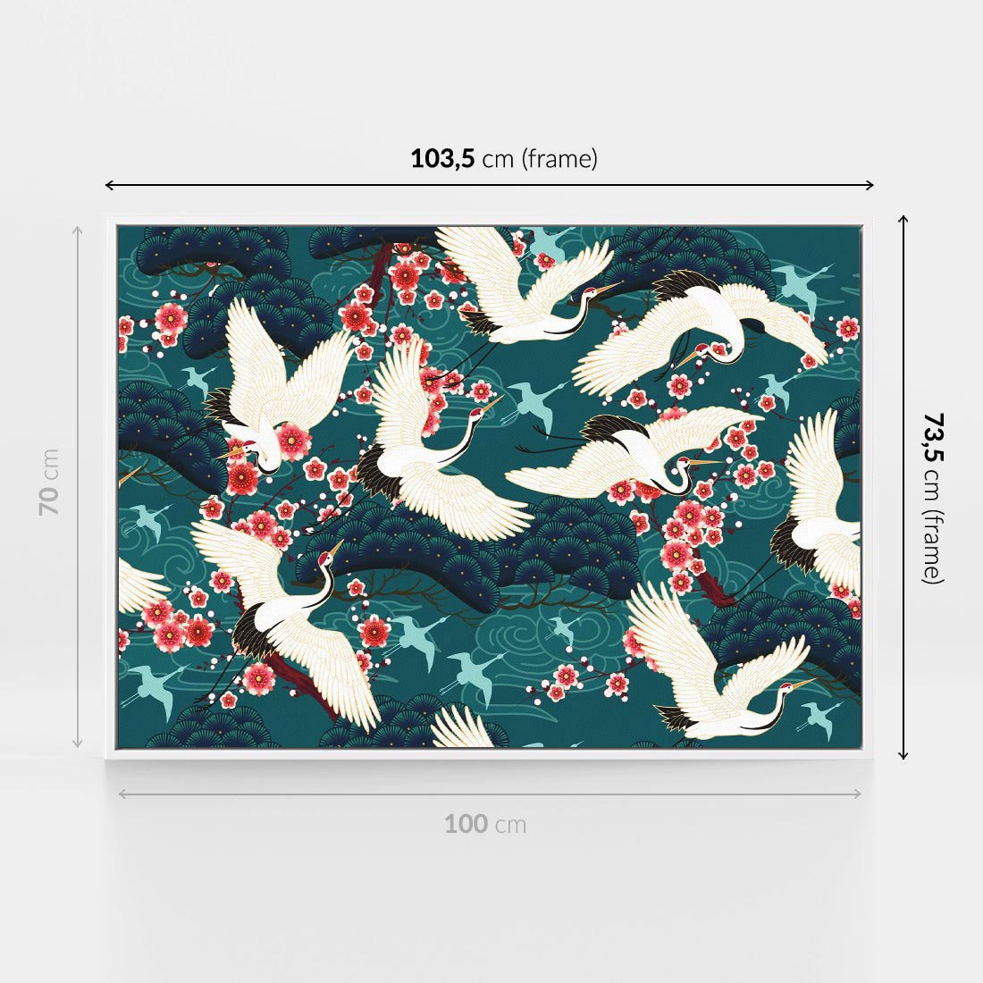 Obraz w ramie 100x70 - Żurawie Wachlarze - orientalne japońskie żurawie, grafika - rama biała