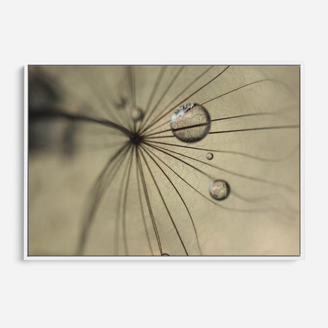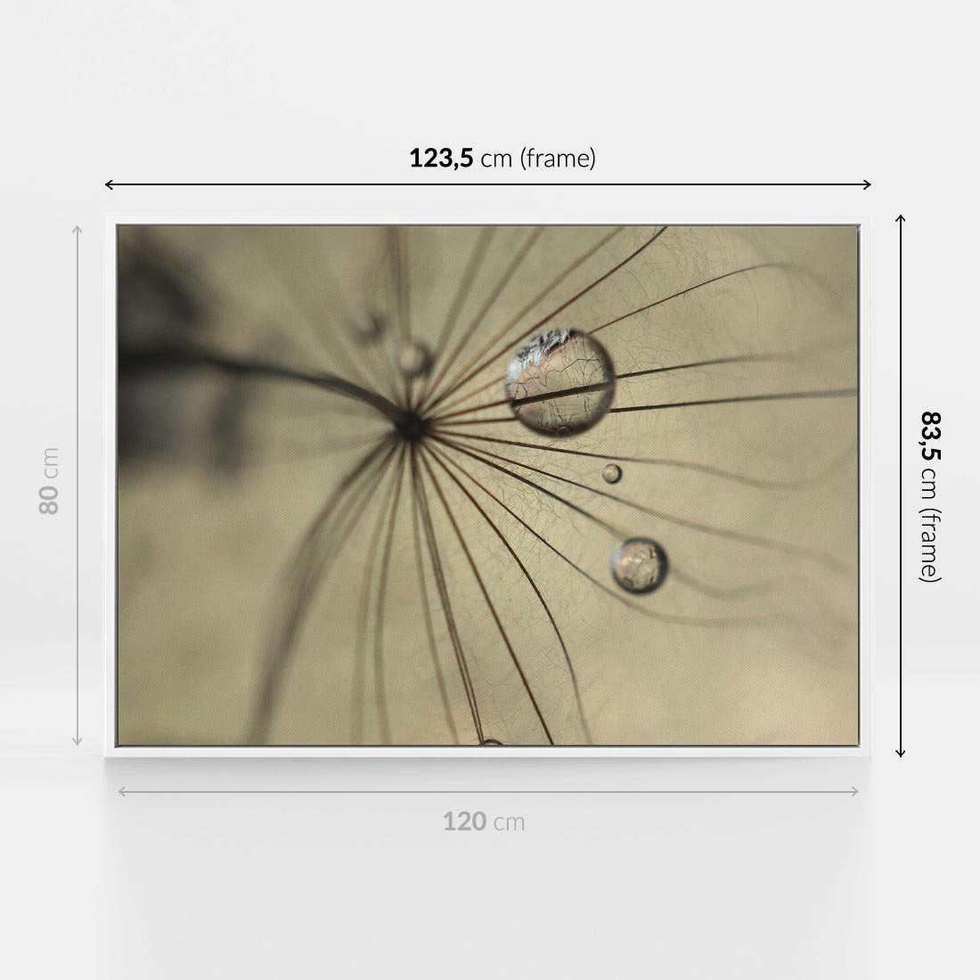 Obraz w ramie 120x80 - Delikatność dmuchawców - dmuchawce, krople - rama biała