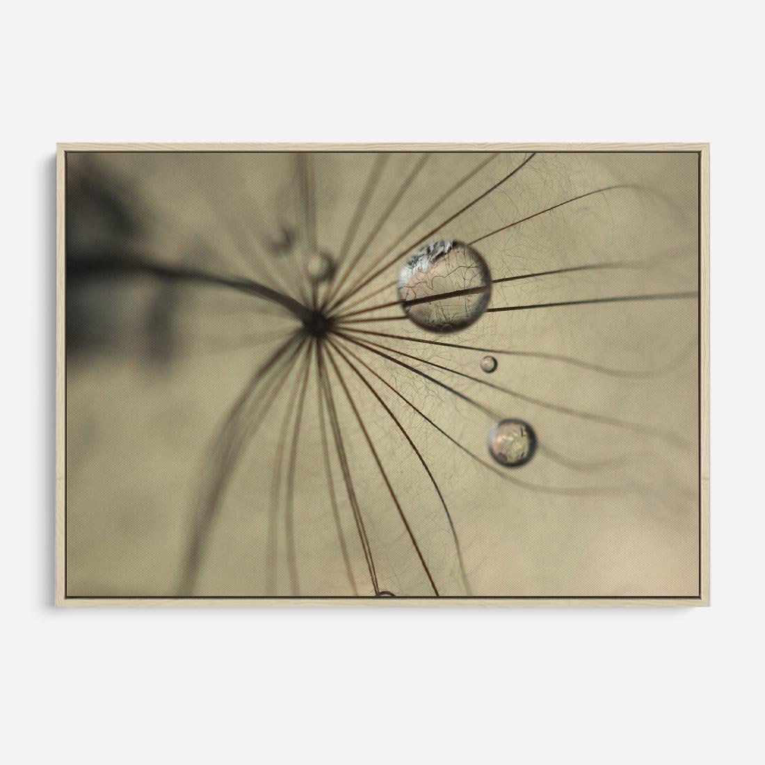 Obraz w ramie 120x80 - Delikatność dmuchawców - dmuchawce, krople - rama drewno