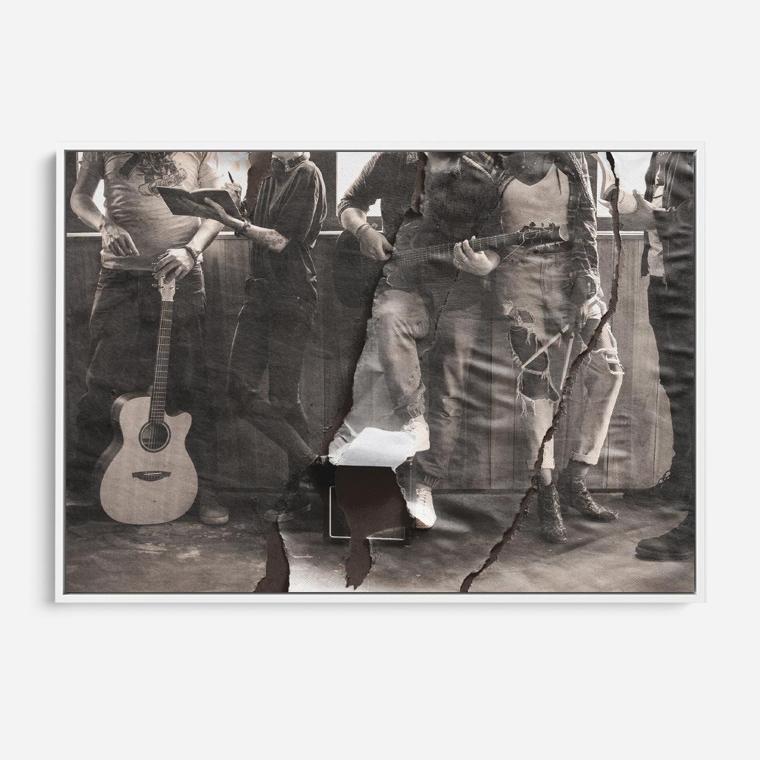 Obraz w ramie 120x80 - Dźwięki Minionej Ery - postarzona fotografia retro, podarta fotografia - rama biała