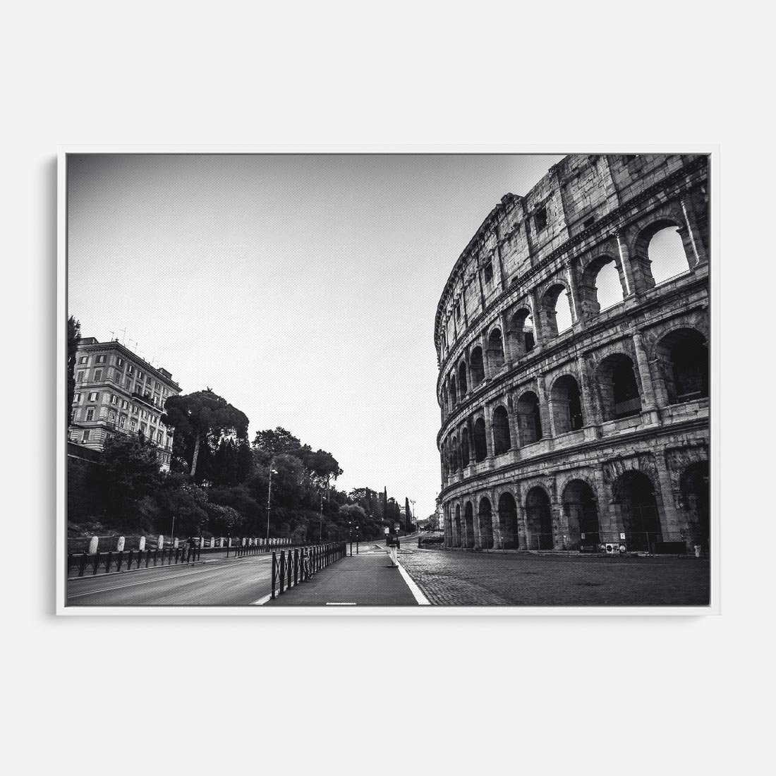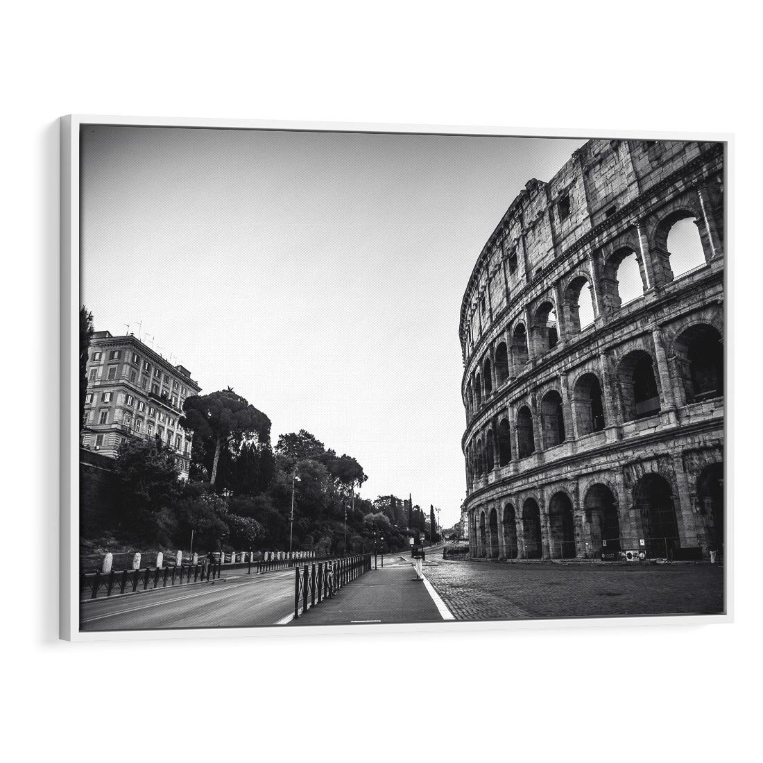 Obraz w ramie 120x80 - Echa Historii - czarno biała fotografia, koloseum - rama biała